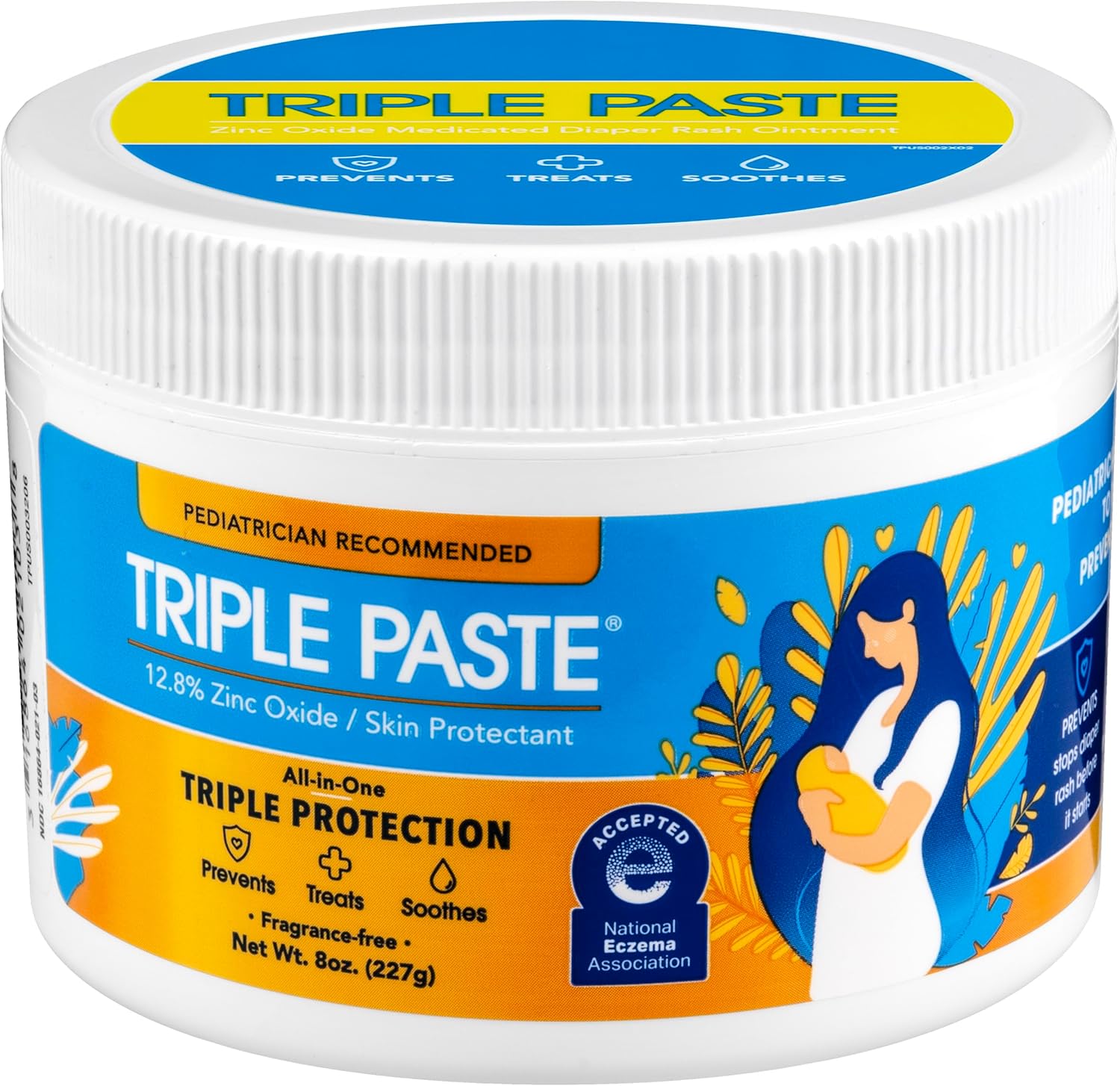 Triple Paste Diaper Rash Cream for Baby - 8 Oz Tub – Zinc Oxide Ointment Treats, Soothes and Prevents Diaper Rash - Pediatrician-Recommended Hypoallergenic Formula for Daily & Overnight Protection