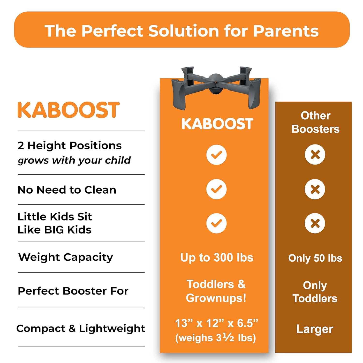 KABOOST Booster Seat for Kitchen Chair, Charcoal - Goes Under The Chair - Portable Booster for Toddlers and Grown Ups