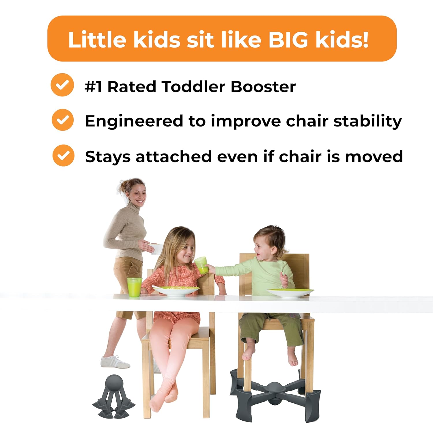 - #1 RATED TODDLER BOOSTER – Fits 4 legged chairs (round, square and curvy legs)