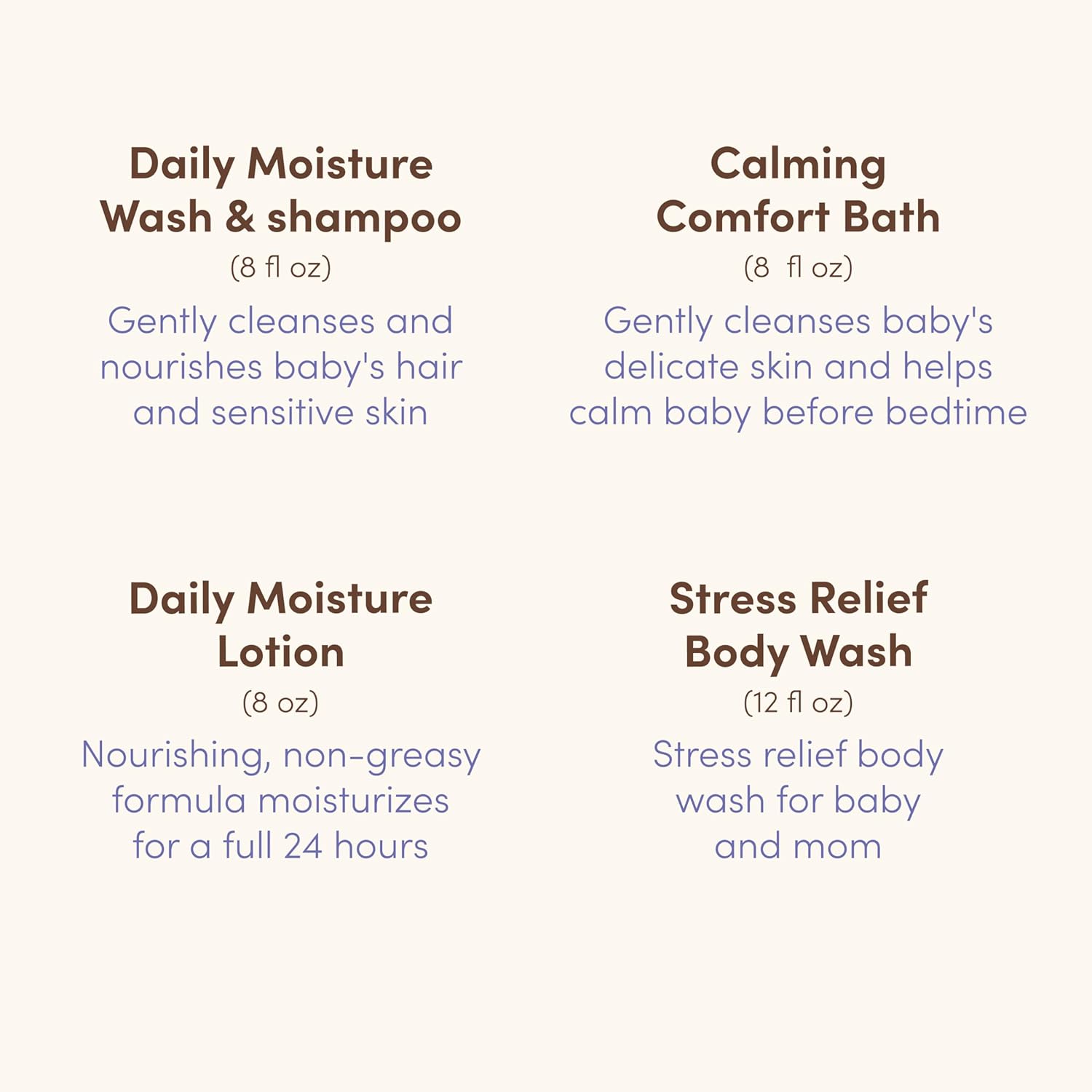 - Gentle & hypoallergenic Wash & Shampoo: soap, phthalate, and paraben-free formula gently cleanses baby’s hair and sensitive skin without drying; with natural colloidal oat; follow with Daily Moisture Lotion to help lock in hydration