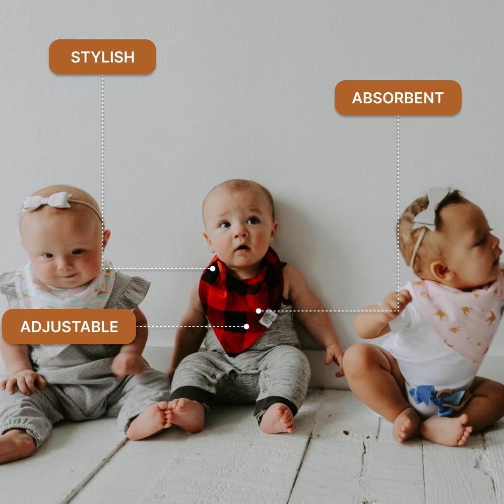 - SUPER SOFT, ABSORBENT & MESS-READY – Made with 100% cotton on the front and soft, absorbent polyester backing, these bibs catch drool, spit-up, and food messes, keeping baby dry, comfortable, and stylish all day long.