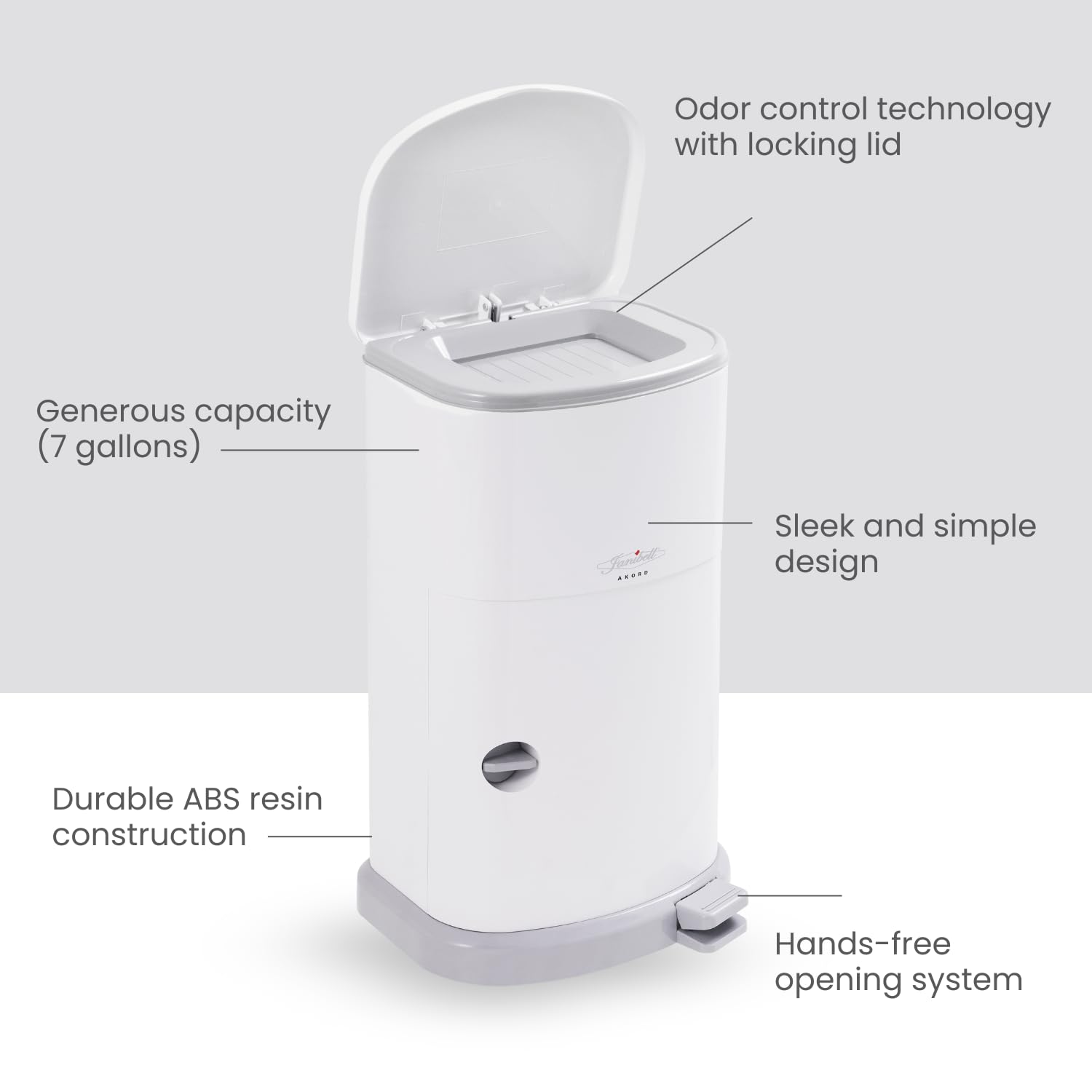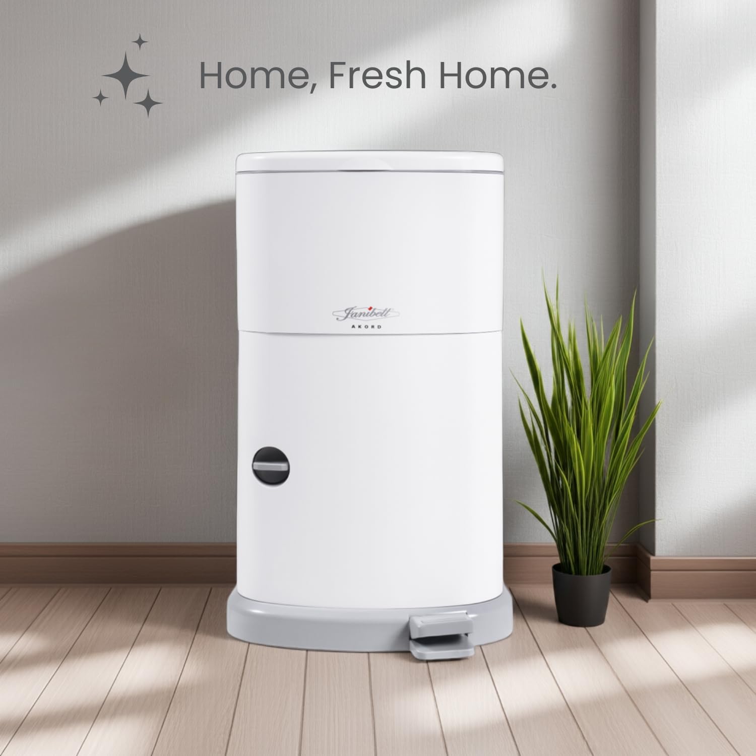 Janibell Akord Slim Adult Diaper Disposal System 7 Gallon Odor Locking Double-Sealed Adult Diaper Pail with Hands-Free Foot Pedal, Holds 22 Large Briefs, Continuous Liner, Durable ABS Resin