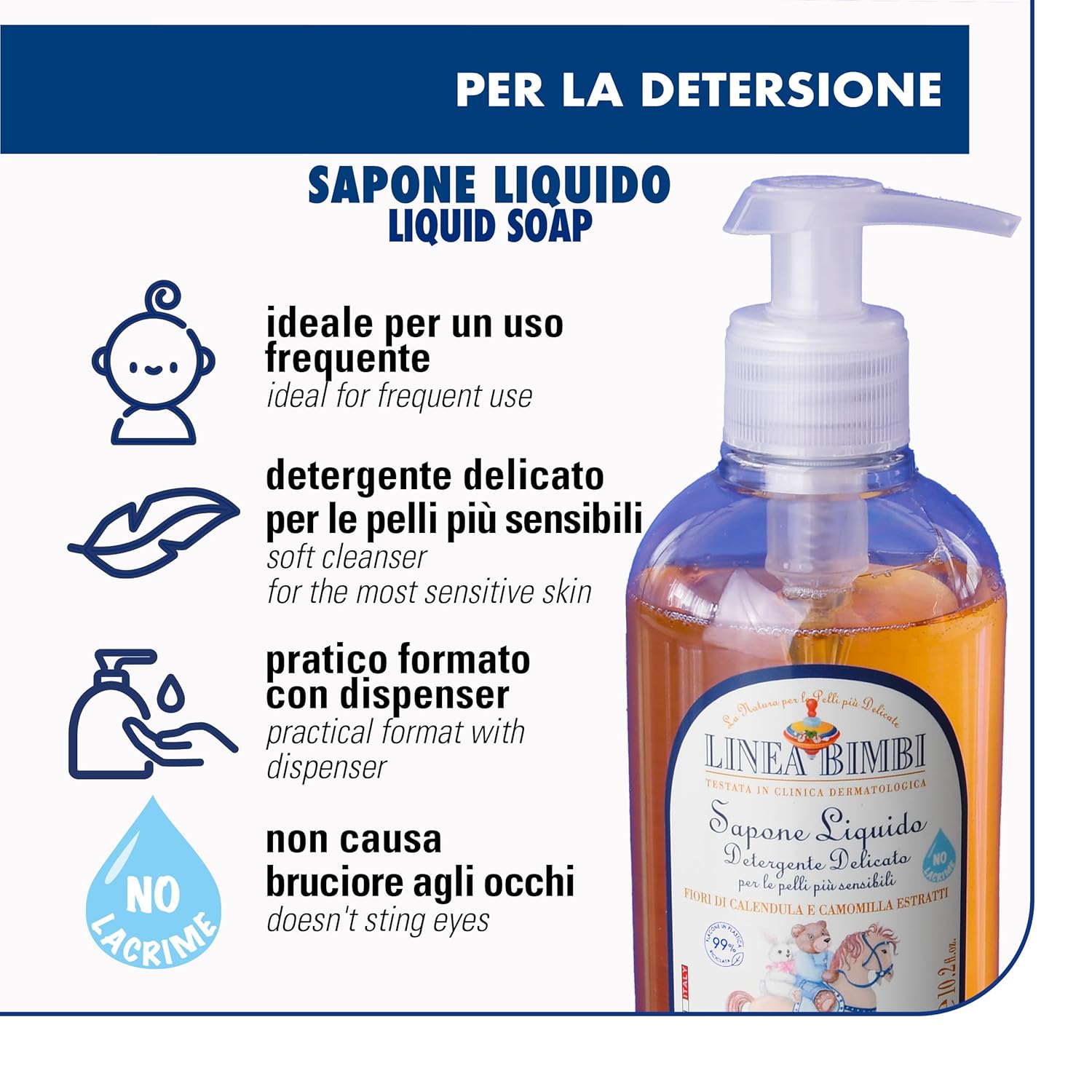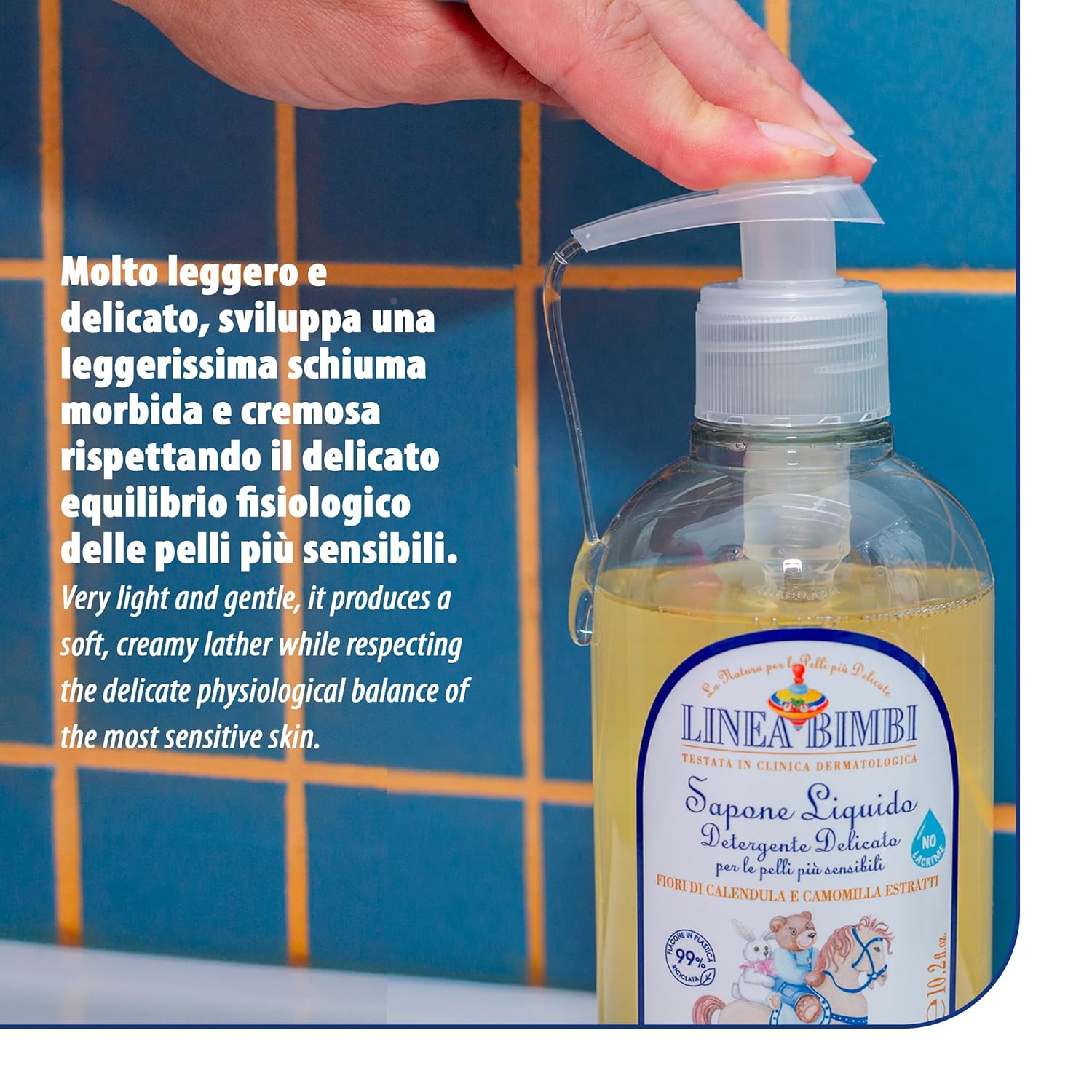 Helan Linea Bimbi Bio - Gentle Baby Soap for Face, Body & Hands with Dispenser, Body Wash for Babies, Plant-Based Cleanser with Calendula & Chamomile Extracts for Sensitive Skin Made in Italy 300fl oz