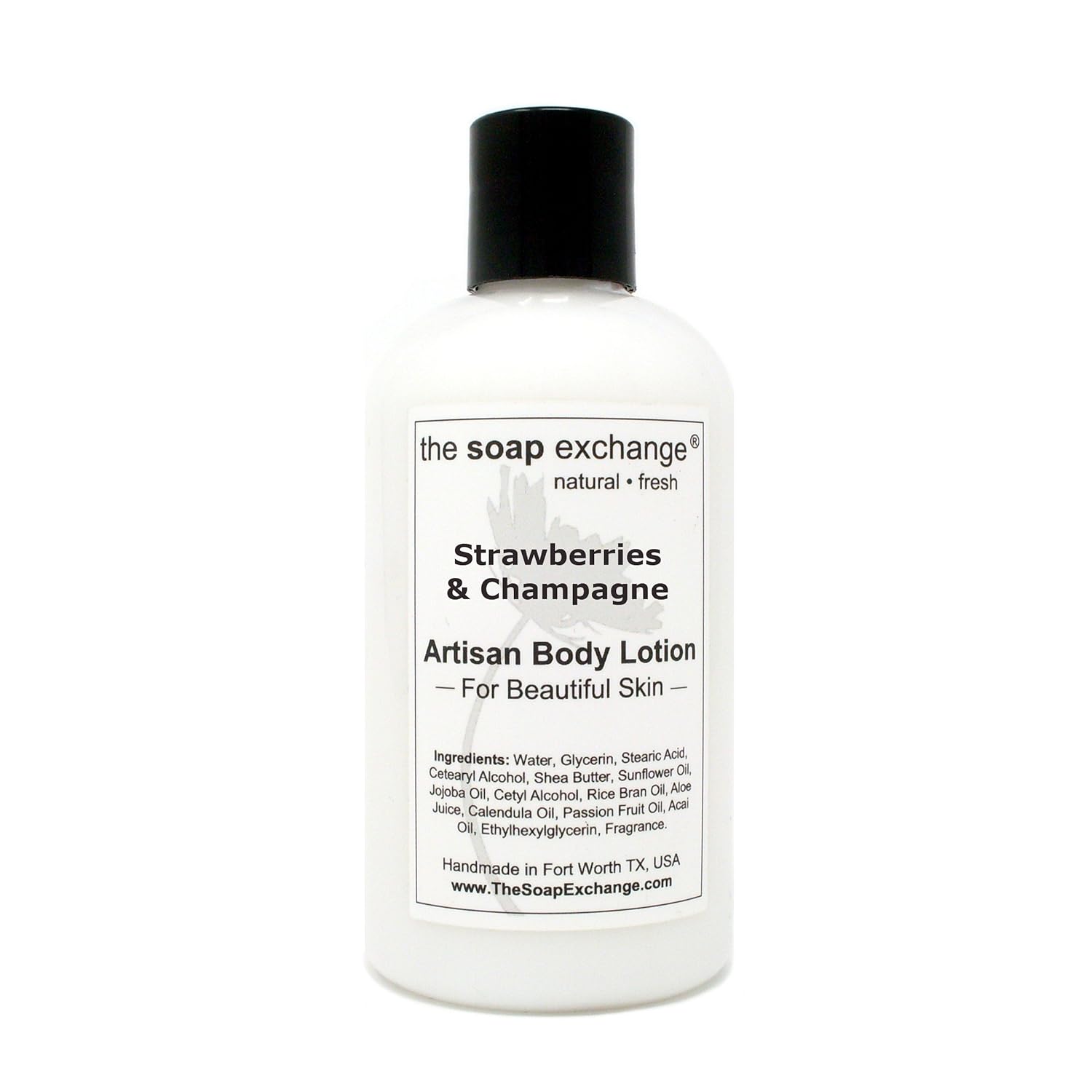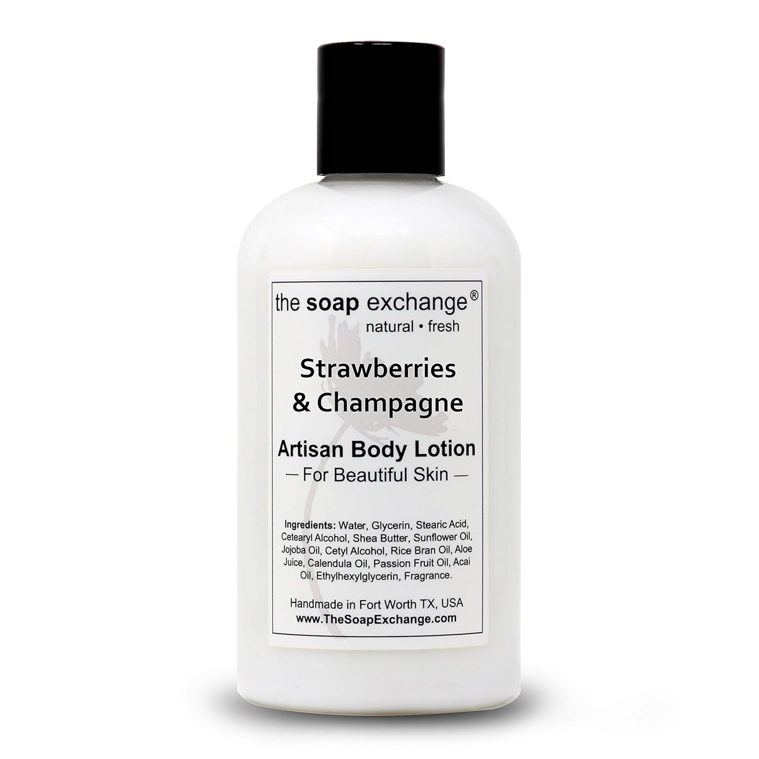 The Soap Exchange Body Lotion - Strawberries & Champagne Scent - Hand Crafted 8 fl oz / 240 ml Natural Artisan Skin Care for Hand, Face, & Body, Moisturize, Hydrate, & Protect. Made in the USA.