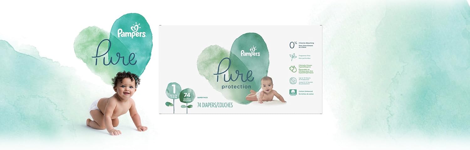 Pampers Diapers Newborn/Size 1 (8-14 lb), Pure Protection Disposable Baby Diapers, Hypoallergenic and Unscented Protection, Super Pack (Old Version), Size 1, 74 Count