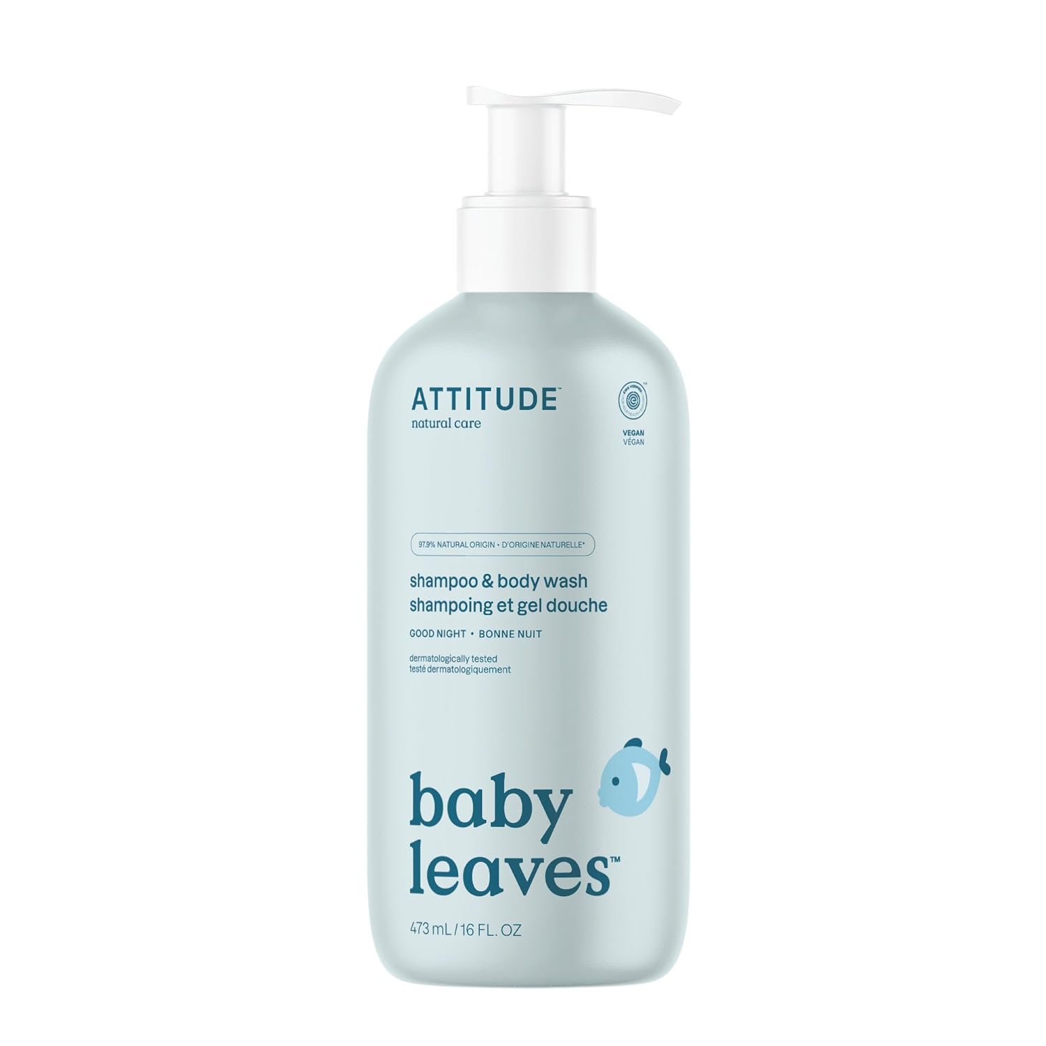 ATTITUDE 2-in-1 Shampoo and Body Wash for Baby, EWG Verified, Dermatologically Tested, Vegan, Good Night, 16 Fl Oz
