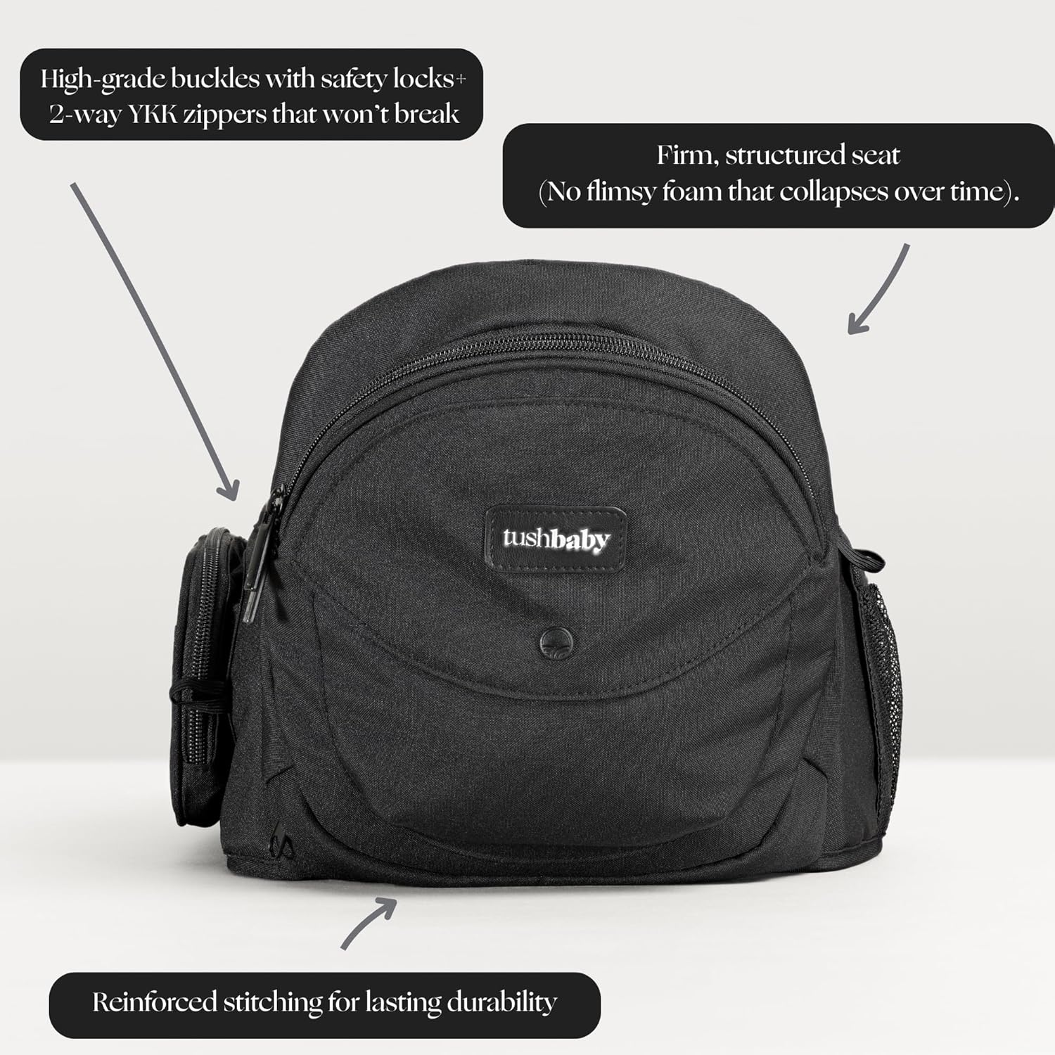 Tushbaby The Original Premium Quality Hip Seat Carrier – Safety-Certified Baby & Toddler Carrier with Secure Safety Buckles, No-Flimsy-Foam Design, Storage Pockets & Nursing Pillow. 0–3 yrs