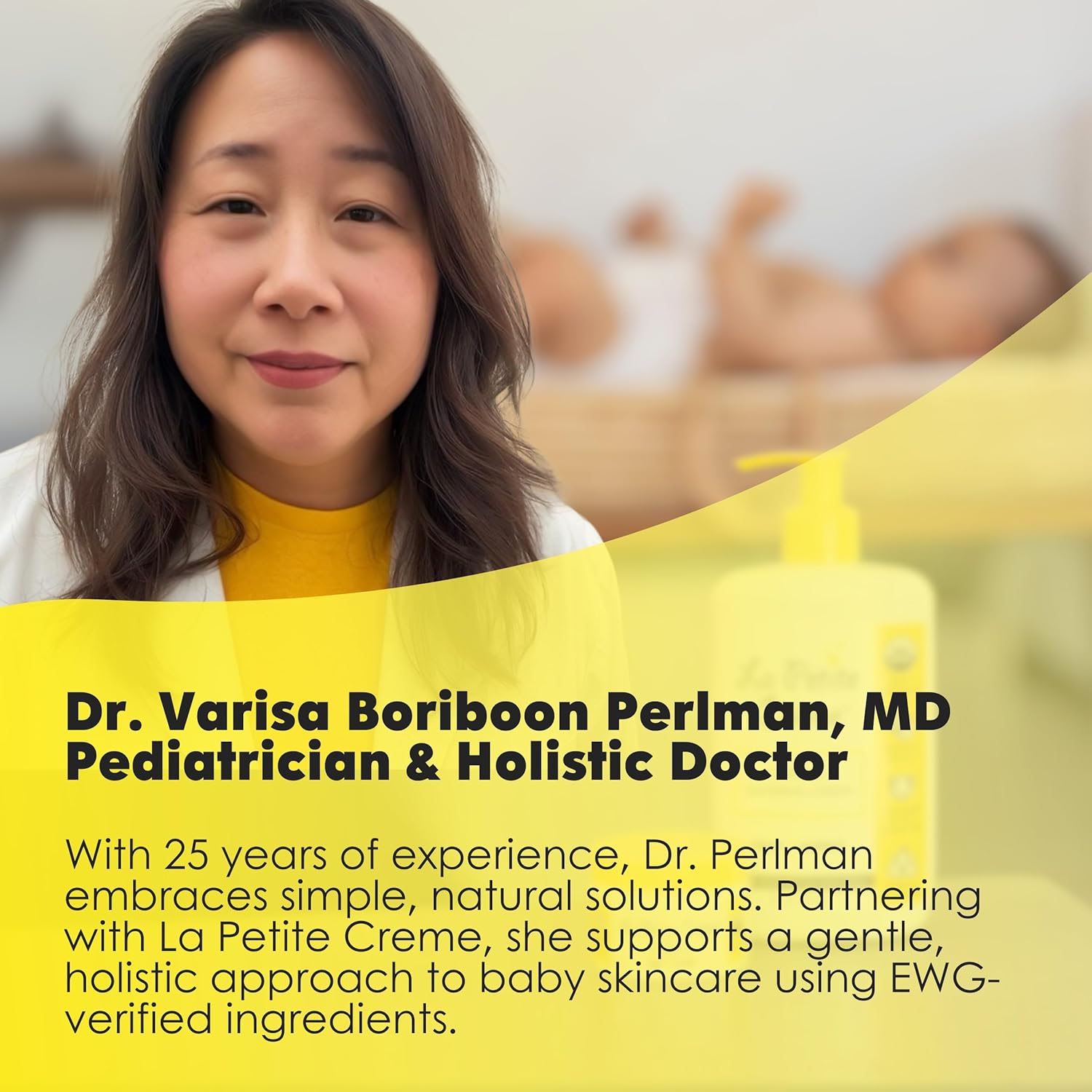 - Pediatrician-Endorsed Skincare with Holistic Touch: Recommended by Dr. Varisa Boriboon Perlman, a board-certified pediatrician with 25 years of experience, La Petite Creme is backed by a medical professional who believes in a “less is more” philosophy for baby skincare. Her holistic approach aligns with our commitment to minimalist, clean, gentle products that nurture delicate skin—proving that safe and simple is always the best care.