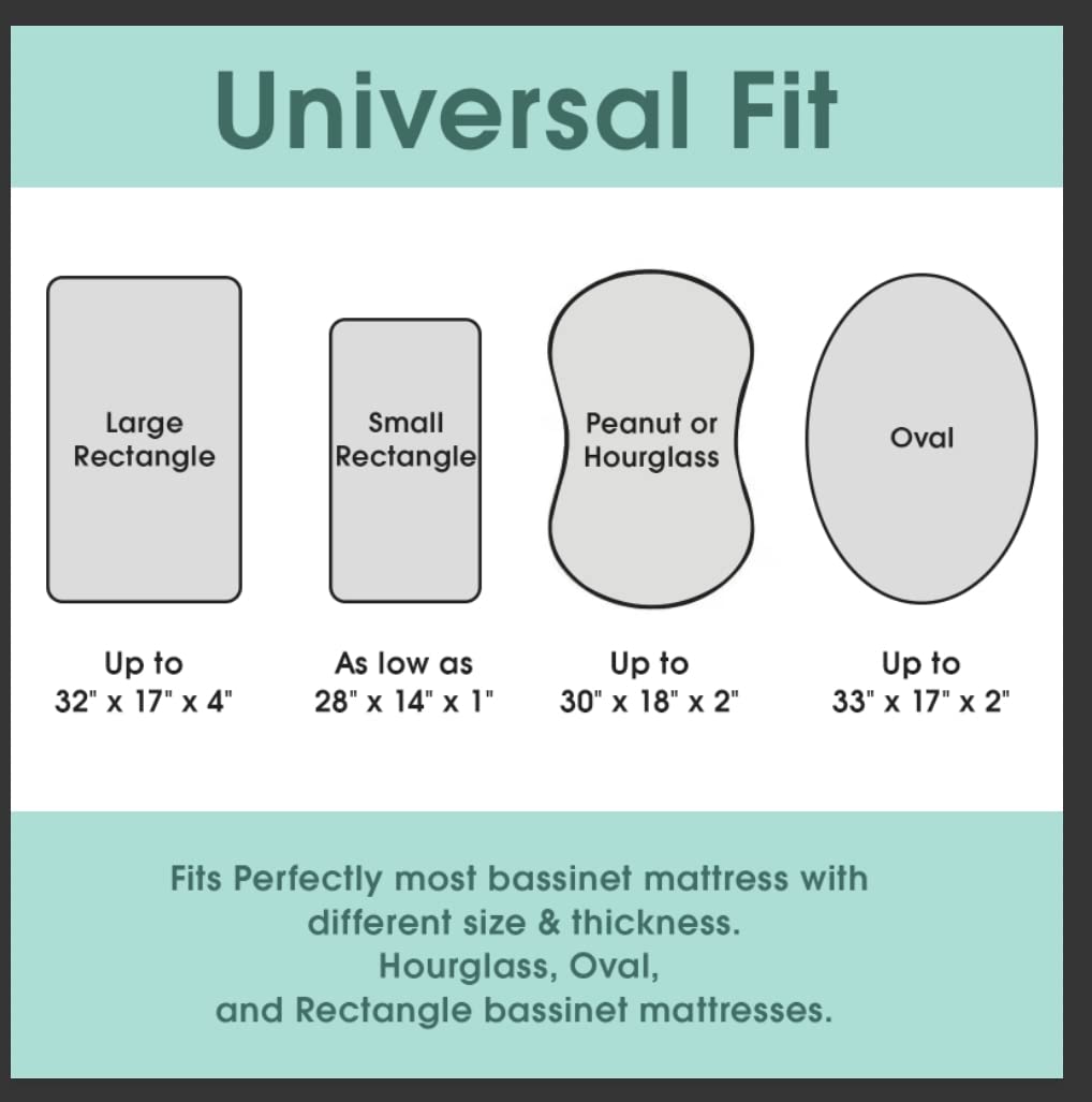 - UNIVERSAL FIT BASSINET SHEETS FOR ALL CRADLE MATTRESSES:Our bassinet sheets are designed to fit all bassinet mattress pads, including oval, round, rectangle, and hourglass shapes. Whether you’re using a bedside sleeper, Moses basket, or standard bassinet, these bassinet sheets feature stretchy elastic edges for a snug, secure fit that won’t slip or bunch.