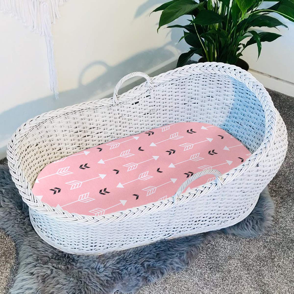 Stretch Fitted Bassinet Sheet Set BROLEX 2 Pack Cradle Sheets for Bassinet Pad/Mattress,Unisex Boys Girls,Ultra Soft,Pink Arrow