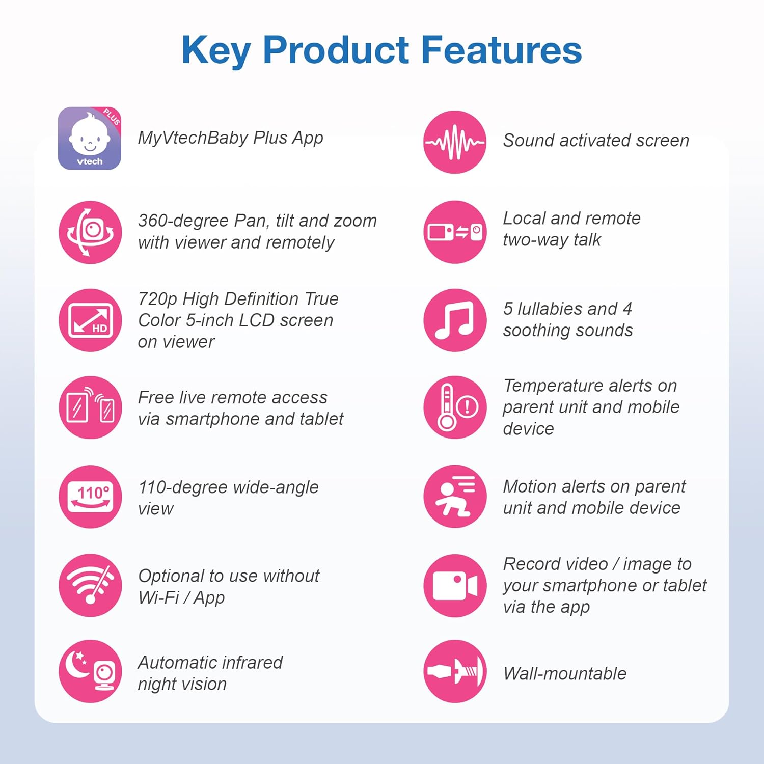 VTech Upgraded Smart WiFi Baby Monitor, 1080p FHD Camera and 5" HD IPS Display, Free App with Motion Video, Sound/Motion Detection and Notifications, Fully Remote Pan-Tilt-Zoom: VM901