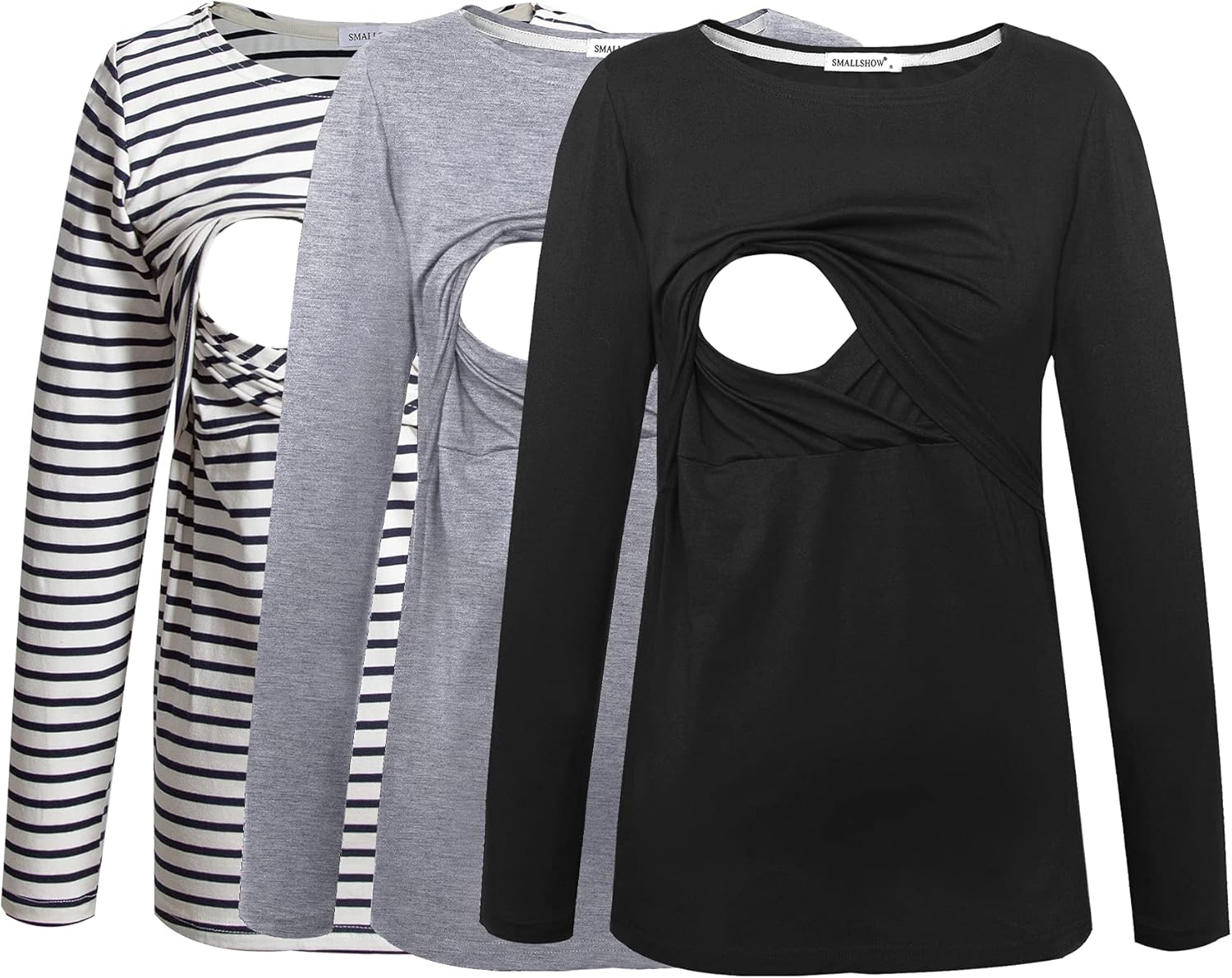Smallshow Women's Maternity Nursing Tops Comfy Long Sleeve Breastfeeding T-Shirt