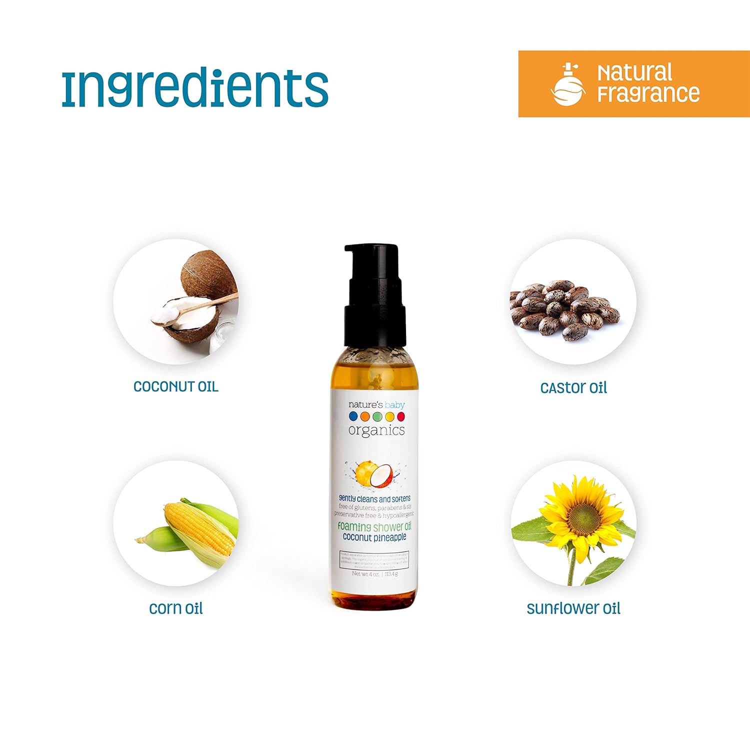 Nature's Baby Gentle Cleansing Bath & Shower Oil Combination For Mom and Baby, Formulated for Dry & Sensitive Skin, No Sulfate, DEA, Preservatives or Paraben, Coconut Pineapple, 4 Oz