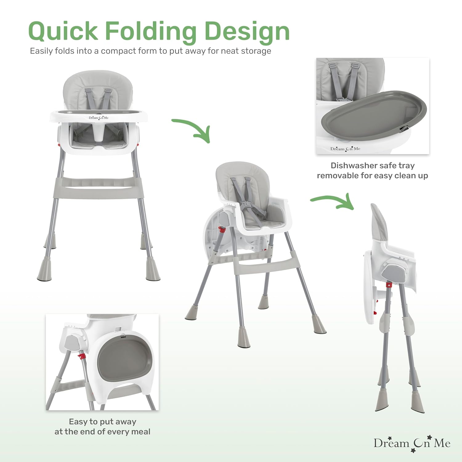 Dream On Me Portable 2-in-1 Tabletalk High Chair, Convertible Compact High Chair, Light Weight Portable Highchair, Grey