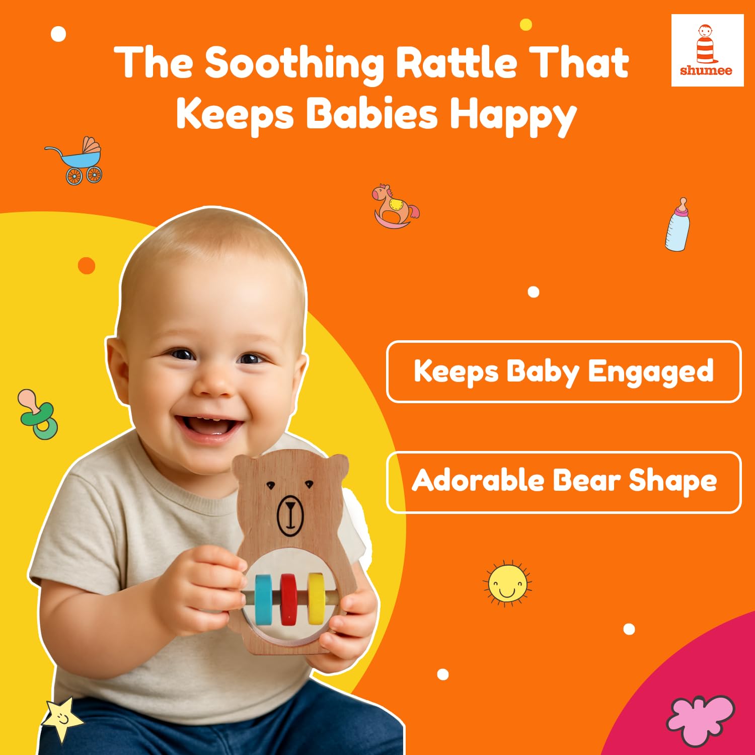 Shumee Wooden Baby Bear Rattle & Teether Wooden Montessori Toy For Babies (0-6 Months), Lightweight & Safe Enhances Grasping Wooden Rattle For Baby. Smooth Edges Sustainable Certified 100% Child Safe.