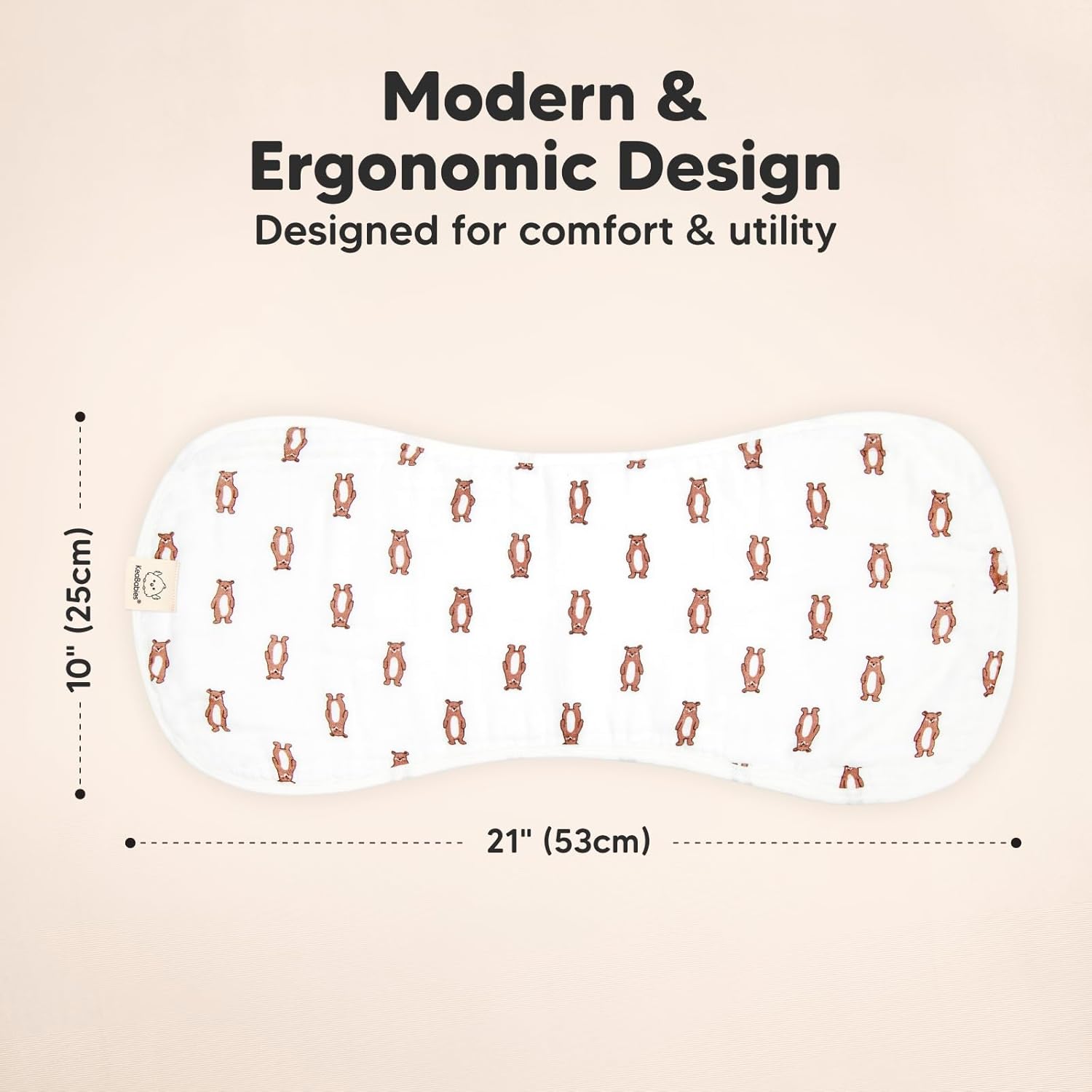 - Maximum Shoulder Coverage - Our burping cloths for babies are specially designed in figure-8 to ensure a secure fit, preventing the burp rags from slipping. Measuring 21" x 10", this neutral burp cloth provides ample coverage for your shoulders.