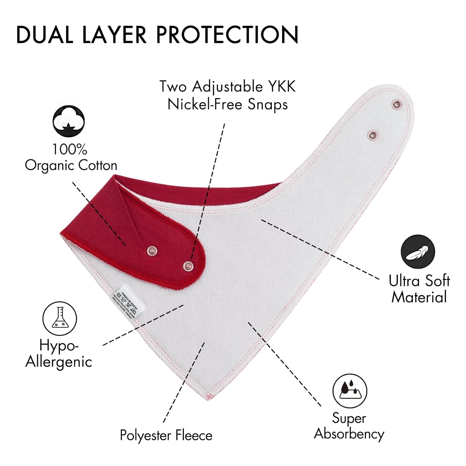 - Multi Functional Use - Our baby bibs for drooling and teething,provide full coverage for baby’s torso and stays flat on your baby’s chest at all times. They are lightweight, plushy, ultra soft and suitable for all skin types including sensitive skin. You can use them as drool bibs, feeding bibs, for burping, spills and mess, or as a handkerchief while on the go.
