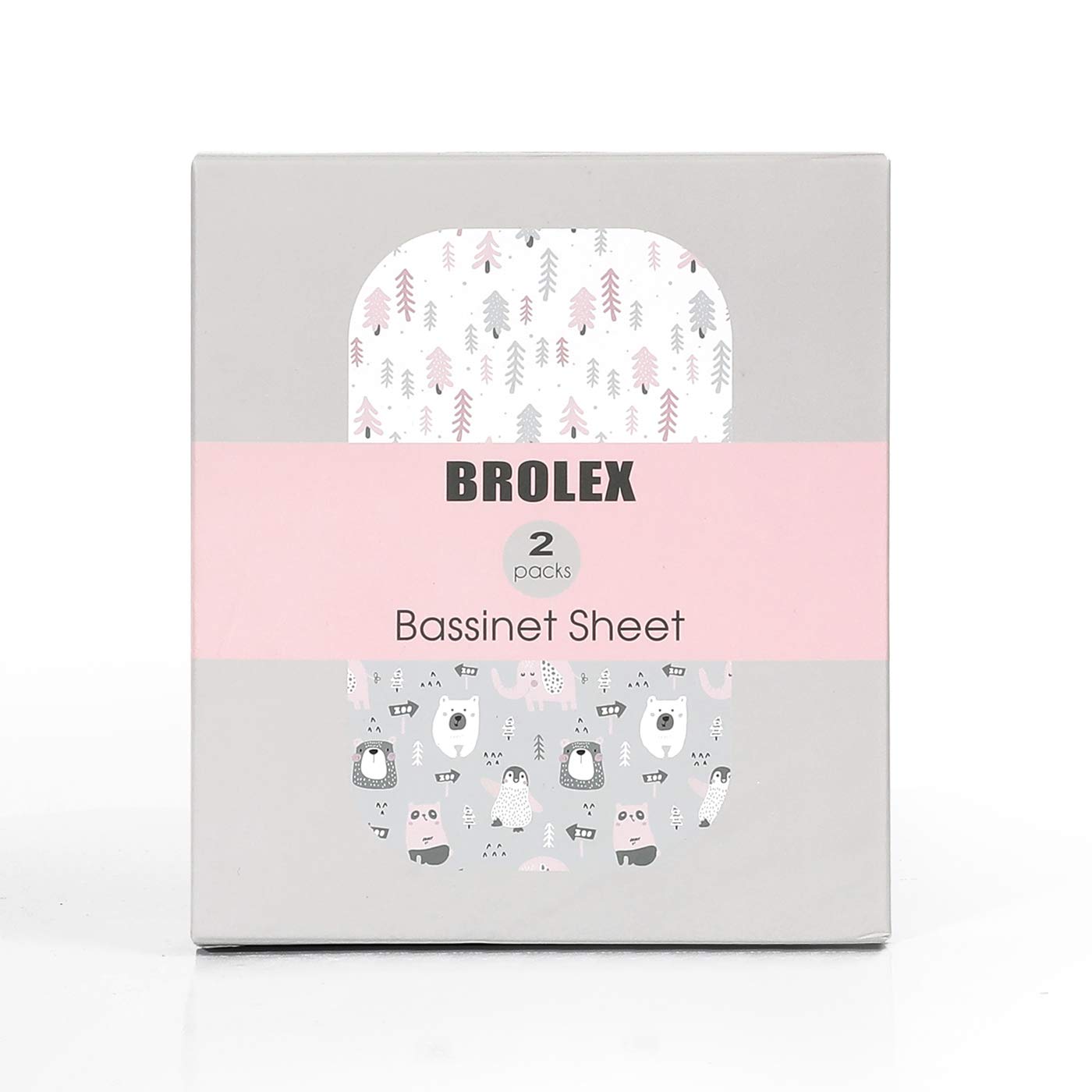 Stretch Fitted Bassinet Sheet Set BROLEX 2 Pack Cradle Sheets for Bassinet Pad/Mattress,Unisex Boys Girls,Ultra Soft,Jungle Animals