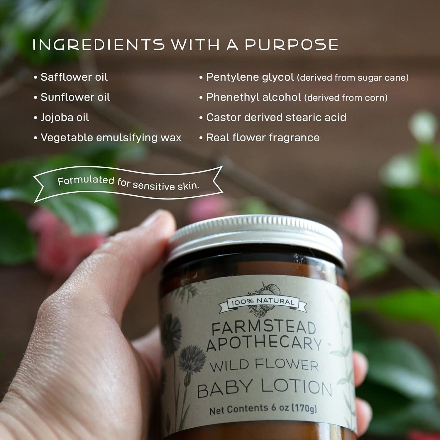 Farmstead Apothecary Baby Lotion- 100% Plant based & Organic- Wildflower 6 oz