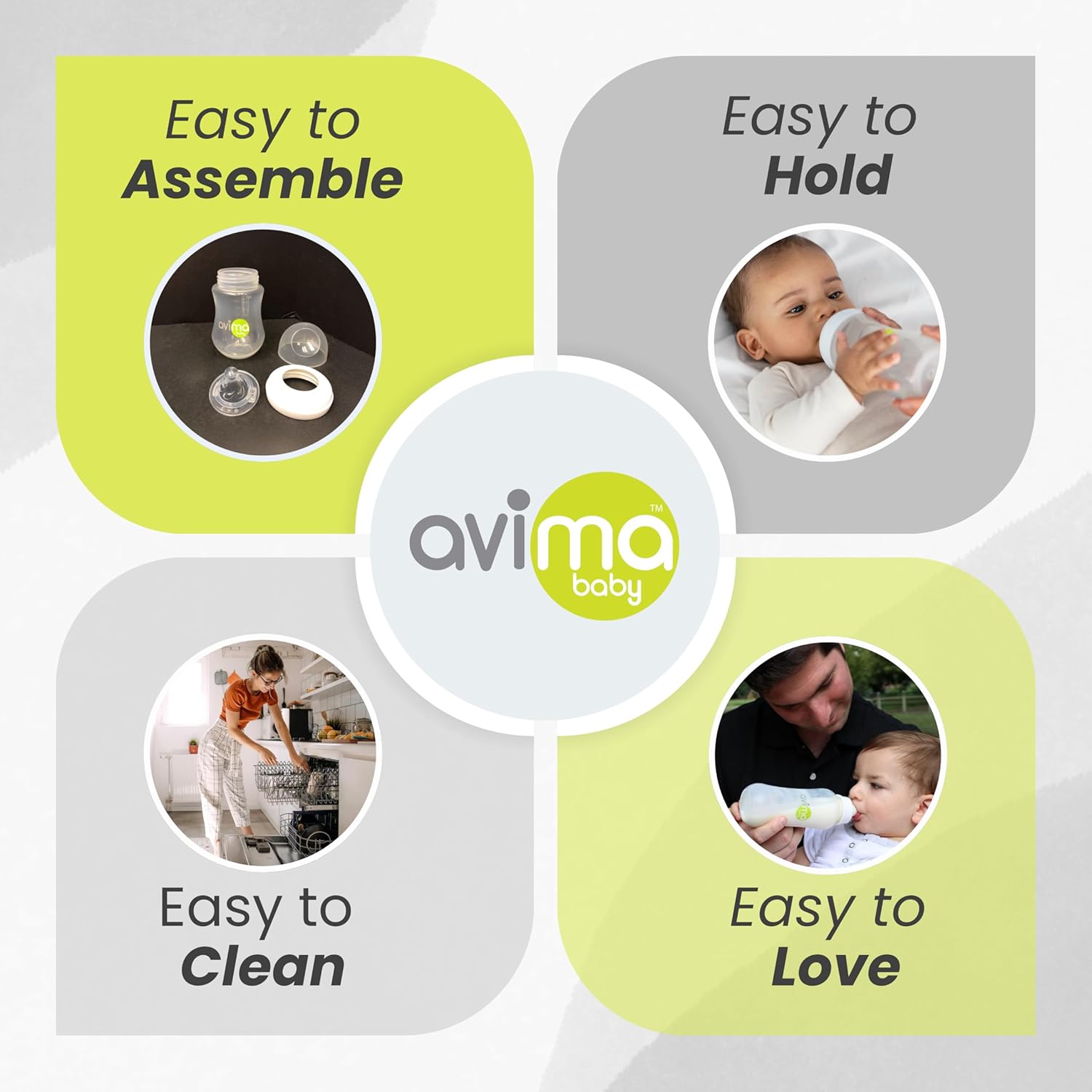 - Easy to Clean & Dishwasher Safe - Our leak-proof design is easy to use & assemble with just 4 pieces, and each Avima Baby feeding bottle is dishwasher safe using the top rack, saving you precious time for cuddles & maybe even a nap!