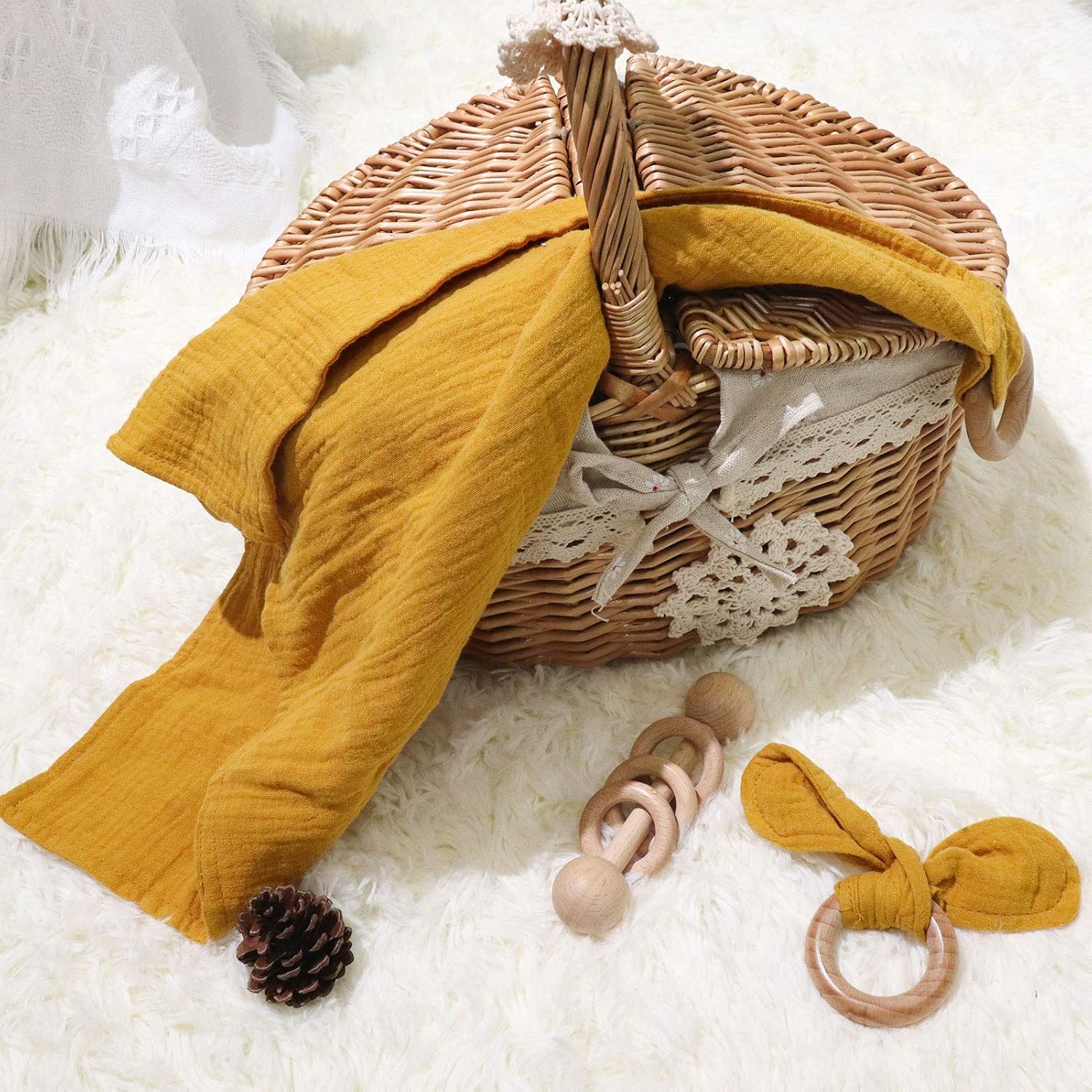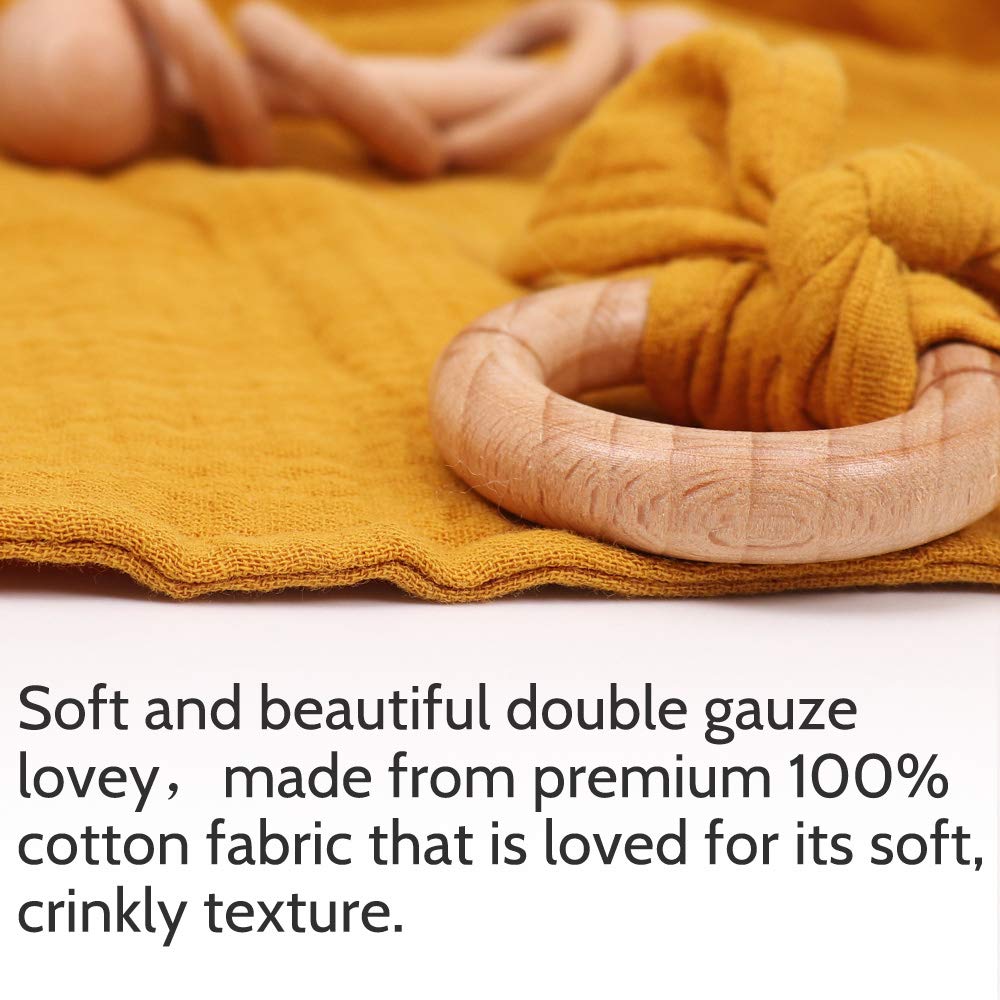 Baby Lovey, Wood Rattle, Teether Ring, 3 Pack Montessori Gift, Ginger, 100% Cotton, Double Gauze, Baby Girl Shower Gift