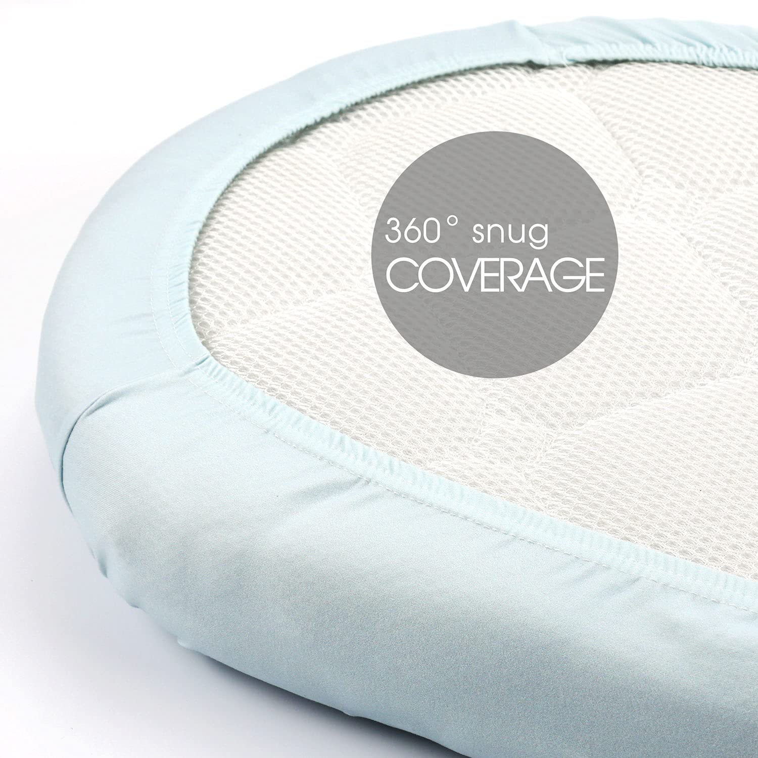 - Universal Fit – Measuring 32" x 16" x 5". Our bassinet sheets fit almost all standard oval, round, rectangle, hourglass shaped bassinet mattress, baby changing pad and travel crib. Each bassinet mattress pad cover comes with an elastic band encased at the bottom for safety.