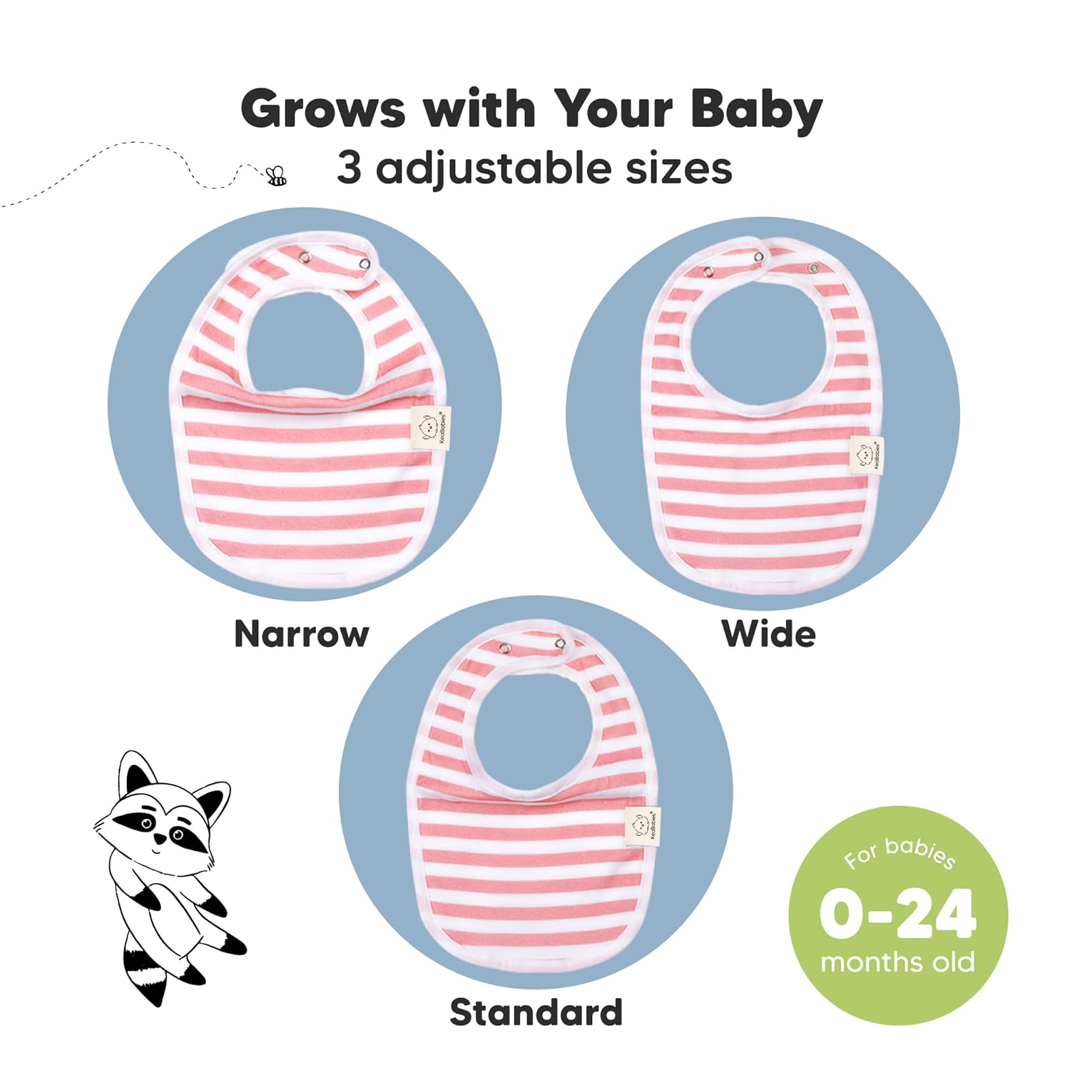 - 3 Adjustable Size With Soft Seams - With 2 sets of easily fasten nickel free snaps, you can adjust the girl and boy bibs according to your baby’s neckline. The soft wrapped organic cotton seams provide extra comfort for your baby and they won’t feel a thing while having the baby cotton bibs on. Suitable for newborn babies up to 24 months.