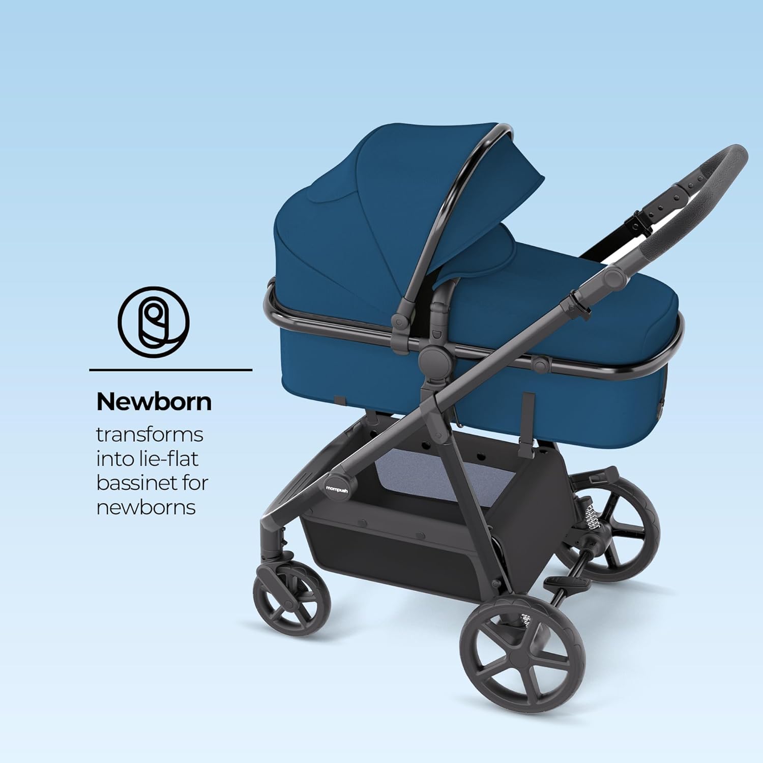 Mompush Meteor2 Baby Stroller 2-in-1 with Newborn Mode, Large Shock-Absorbing Wheels, Car Seat Adapter Included – Full-Size Infant & Toddler Stroller for All-Terrain Family Outings