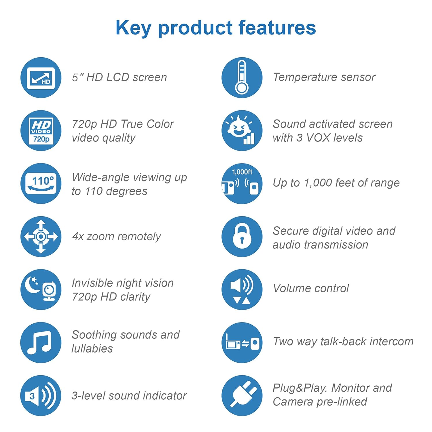 - 2 Way Talk and Long Range - Effortlessly calm cries from separate rooms with the two-way talk-back intercom. Sweetly observe from any distance, even from your backyard, with up to 1,000 feet of crystal clear reception.