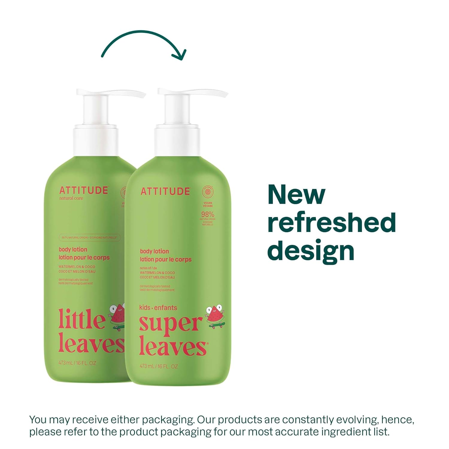 ATTITUDE Body Lotion for Kids, EWG Verifed Moisturizer, Dermatologically Tested, Plant and Mineral Based Cream, Vegan, Watermelon & Coco, 16 Fl Oz (Pack of 6)