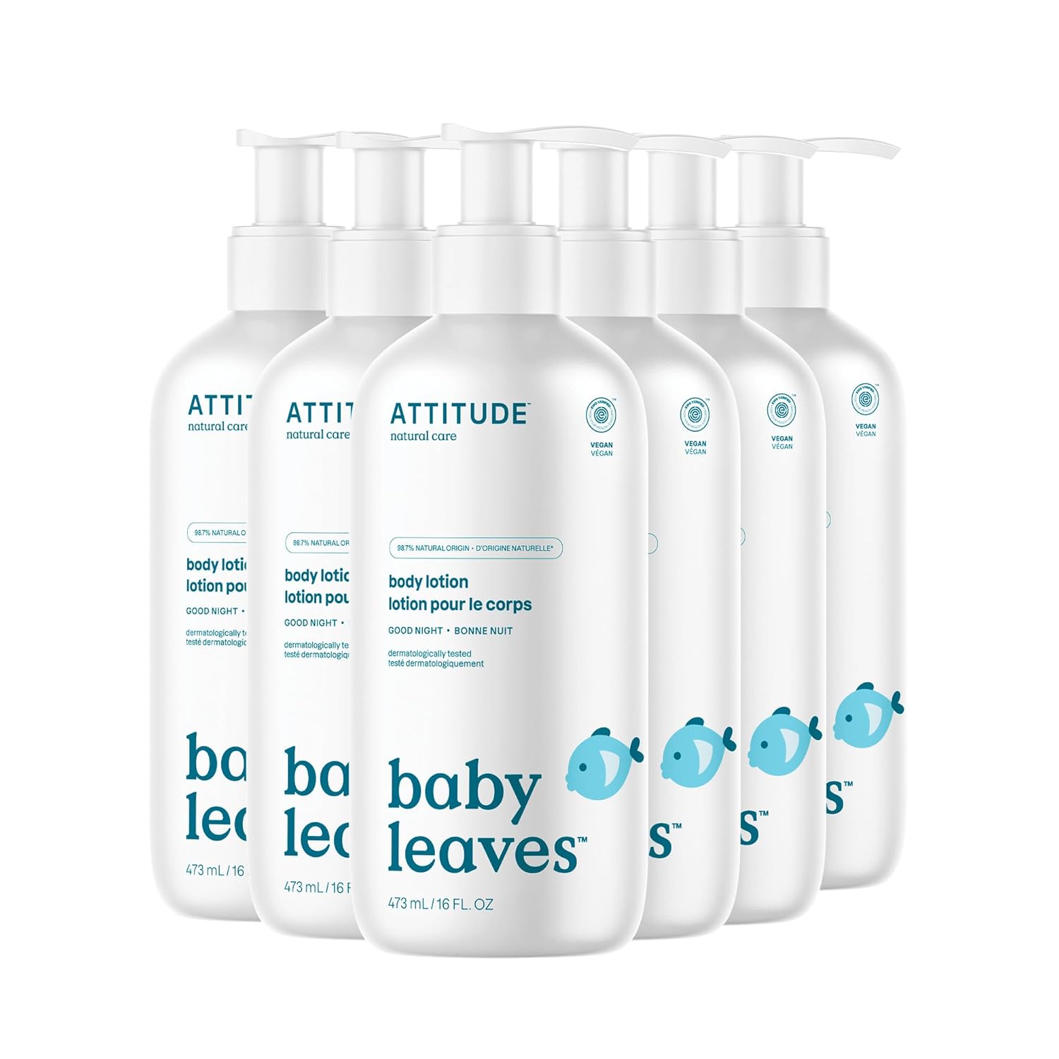 ATTITUDE Baby Lotion, EWG Verified Moisturizer, Dermatologically Tested Moisturizing Cream, Vegan and Cruelty-Free, Good Night, 16 Fl Oz (Pack of 6)