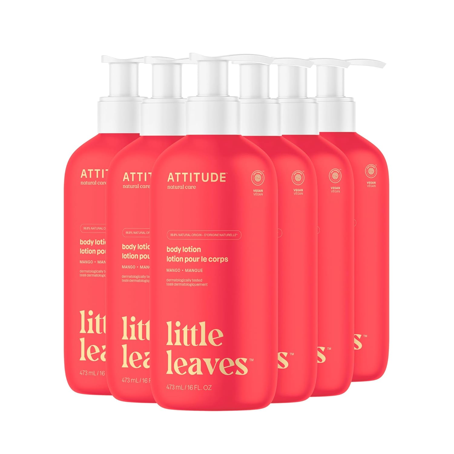 ATTITUDE Body Lotion for Kids, EWG Verifed Moisturizer, Dermatologically Tested, Plant and Mineral Based Cream, Vegan, Mango, 16 Fl Oz (Pack of 6)