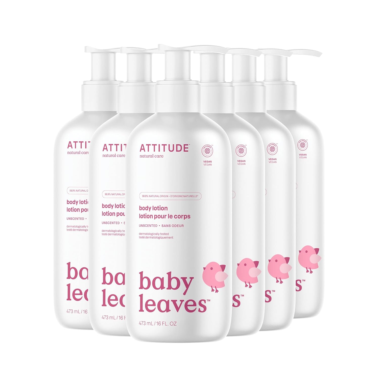 ATTITUDE Baby Lotion, EWG Verified Moisturizer, Dermatologically Tested Moisturizing Cream, Vegan and Cruelty-Free, Unscented, 16 Fl Oz (Pack of 6)