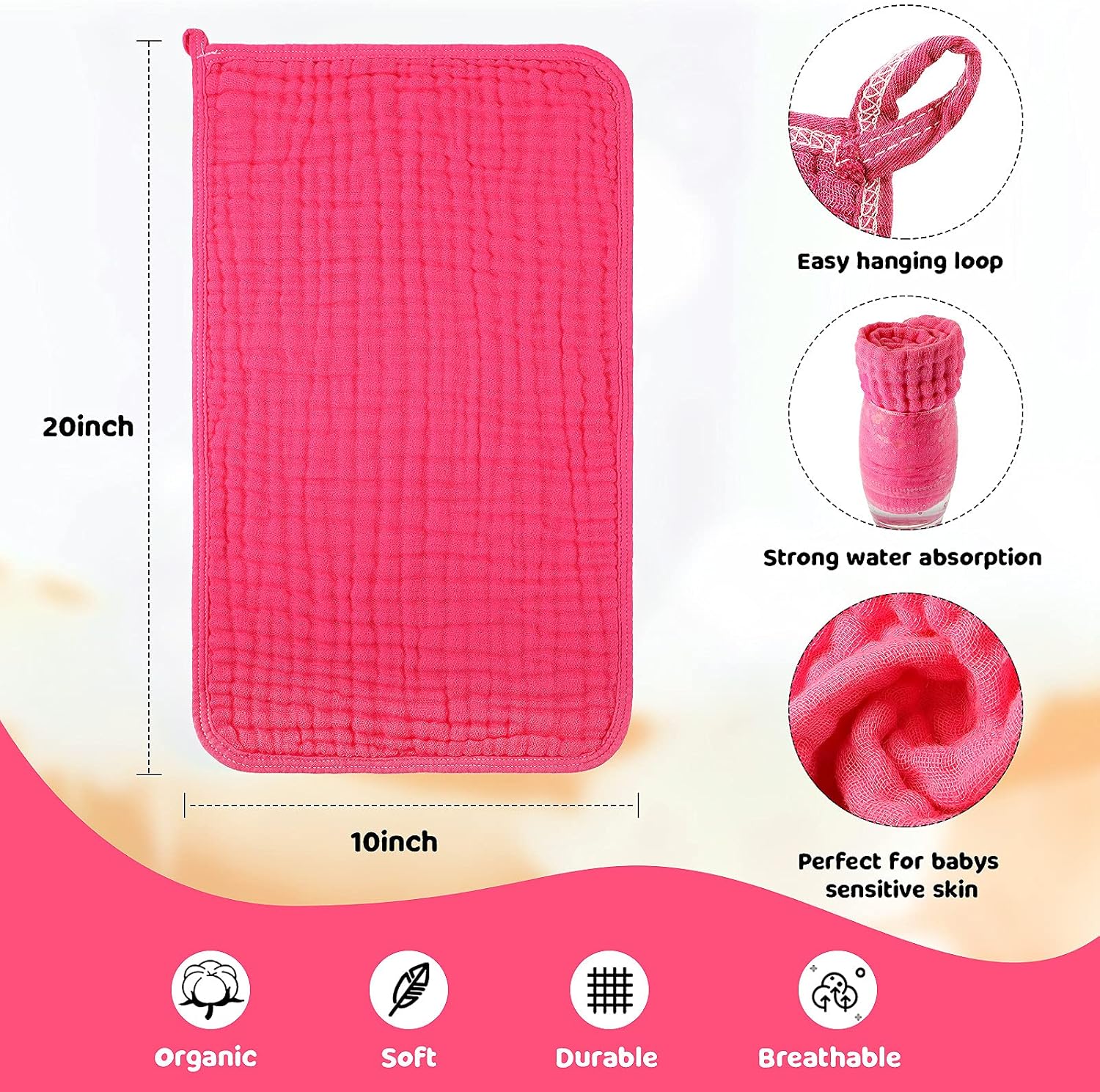 - 6 Absorbent Layer Design:each muslin burping rag features 6 layers, thick enough to absorb liquids, easily wipe off sweat and water, providing cozy using experience, can keep the jaw of your baby dry daylong, and the soft material will protect your teething baby from cheek