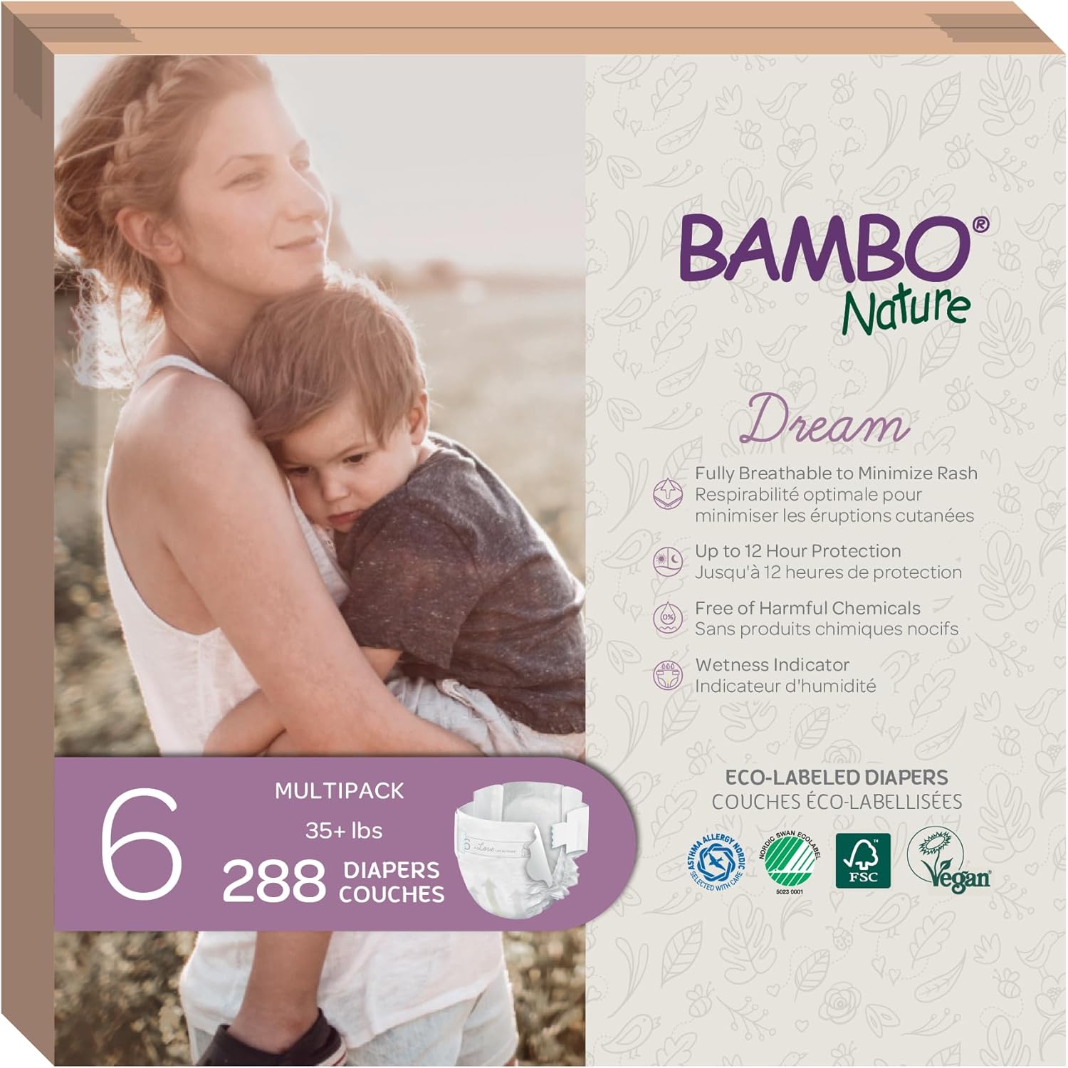 Bambo Nature Hypoallergenic Dream Baby Diapers, Premium Eco-Labeled Sustainable Diapers, Enhanced Leakage Protection, Totally Chlorine-free, Skin Friendly, and Super Absorbent - Size 6 (288 Count)