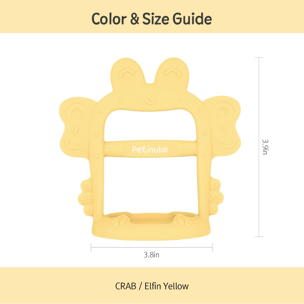 Anti-Dropping Silicone Baby Wrist Teether Soothing Pacifier for Infants 3+ Months Babies, Pack of 1, Made in Korea (Crab-Elfin Yellow)