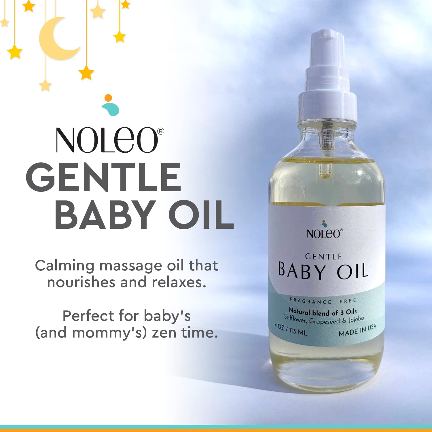 NOLEO Gentle Baby Oil - Calming Baby Oil for Newborn w/Grapeseed, Safflower & Jojoba Baby Skin Care Natural Oils - Baby Oil Organic for Sensitive Skin, No Fragrance & No Perfumes - 4 oz