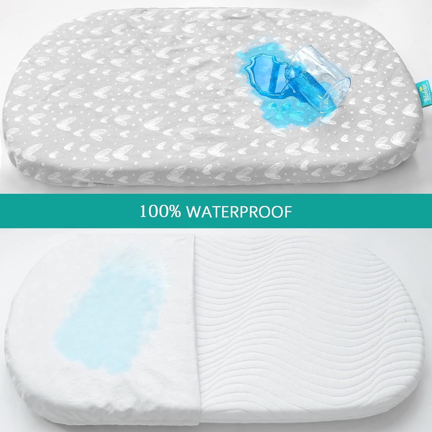 - 100% Waterproof: The backing layer of waterproof bassinet sheets protects mattress from any water spills or bed-wetting.