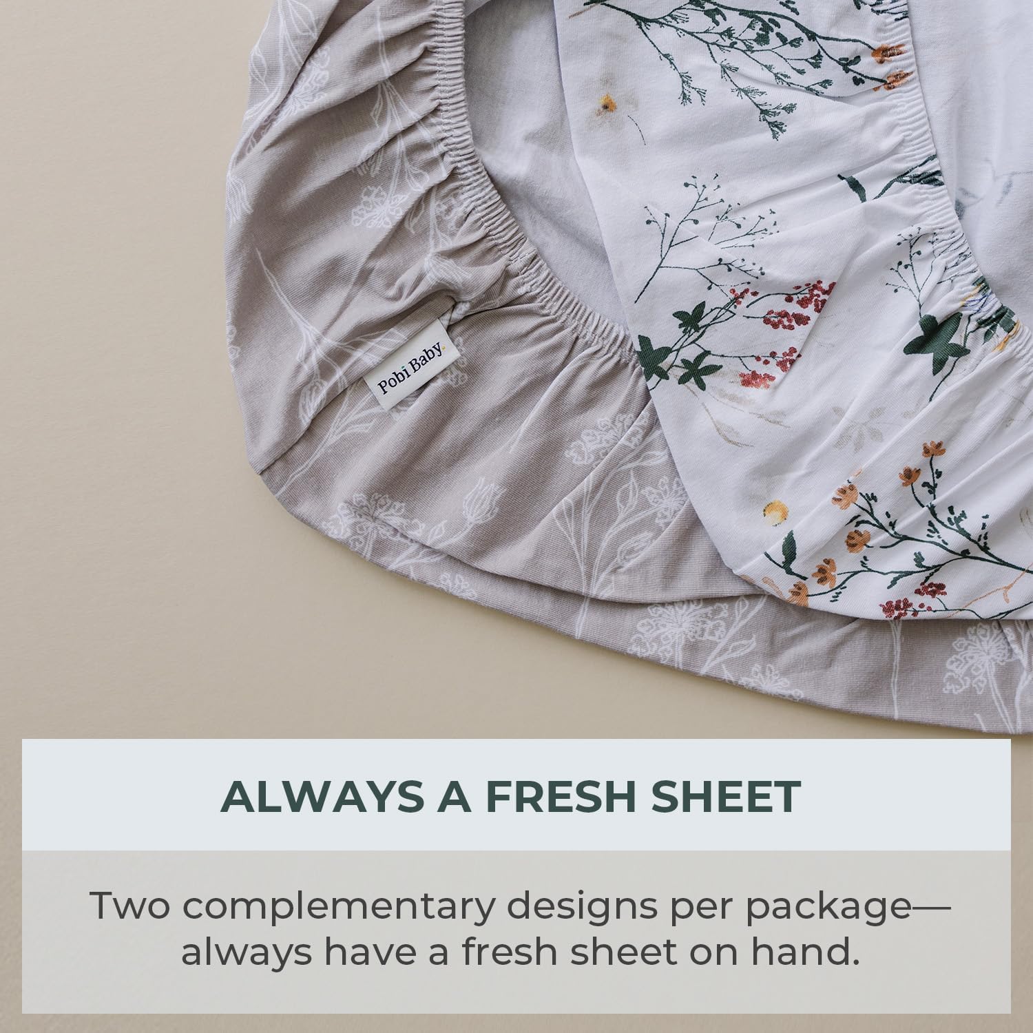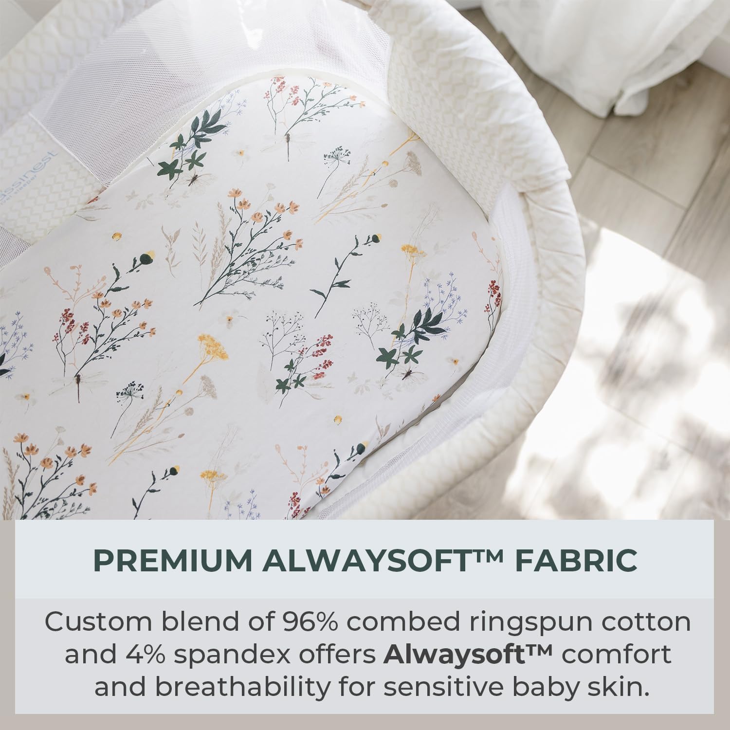 Pobibaby - 2 Pack Premium Bassinet Sheets for Standard Bassinets - Ultra-Soft Jersey Knit, Stylish Floral Pattern, Safe and Snug for Baby (Wildflower)