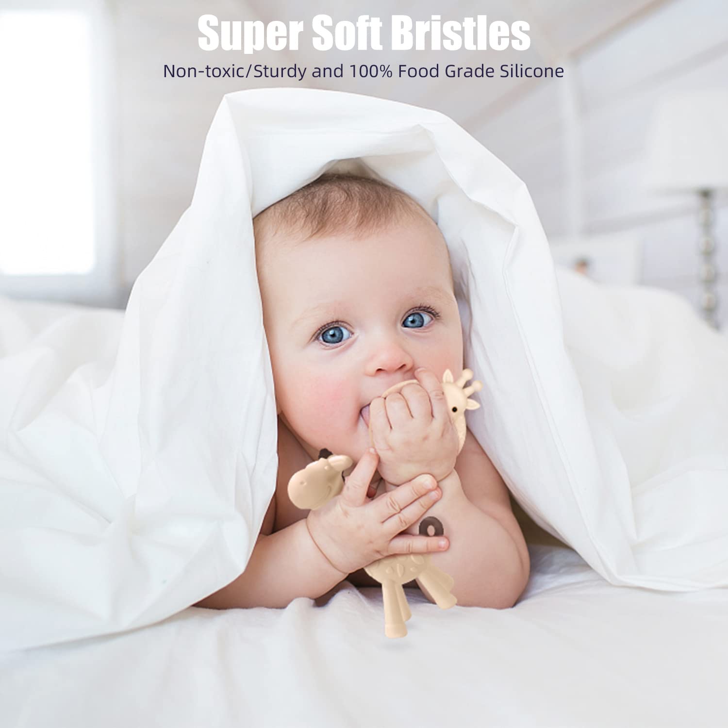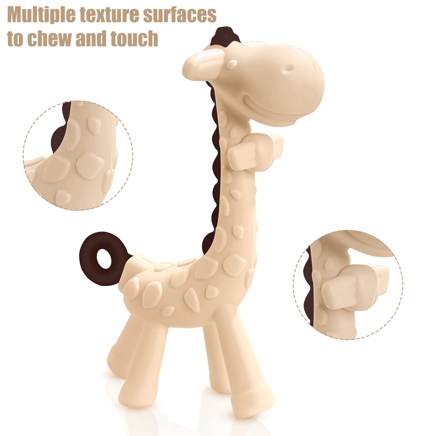 SHARE&CARE BPA Free Silicone Giraffe Baby Teether Toy with Storage Case, for 3 Months Above Infant Sore Gums Pain Relief and Baby Shower, Baby Teething Toys (Cream)