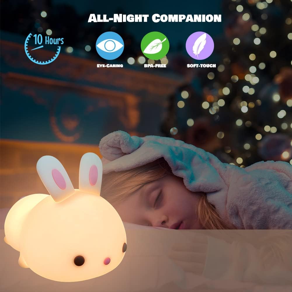 - ✅ BEST BIRTHDAY TEEN GIFT FOR BOYS AND GIRLS - Perfect Birthday and Christmas gifts for kids, baby, toddlers, boys, girls, and bunny lovers. Kids love this cute bunny lamp crazily, and adults love it as well. You can squeeze the cute night light with safety and color-changing mode makes you feel less anxiety too. One charge of our night light can stay up to 10 hours with the light on. They are also perfect for short time use like a child's bedtime or playroom area.