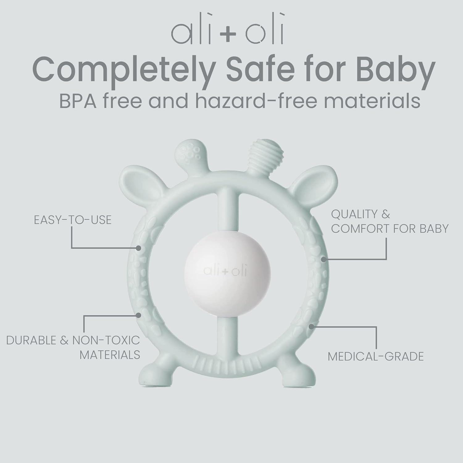 Ali+Oli Sage Giraffe Baby Teether & Rattle, Silicone Teethers for Babies 3+ Months, BPA Free & Freezable Teething Toys