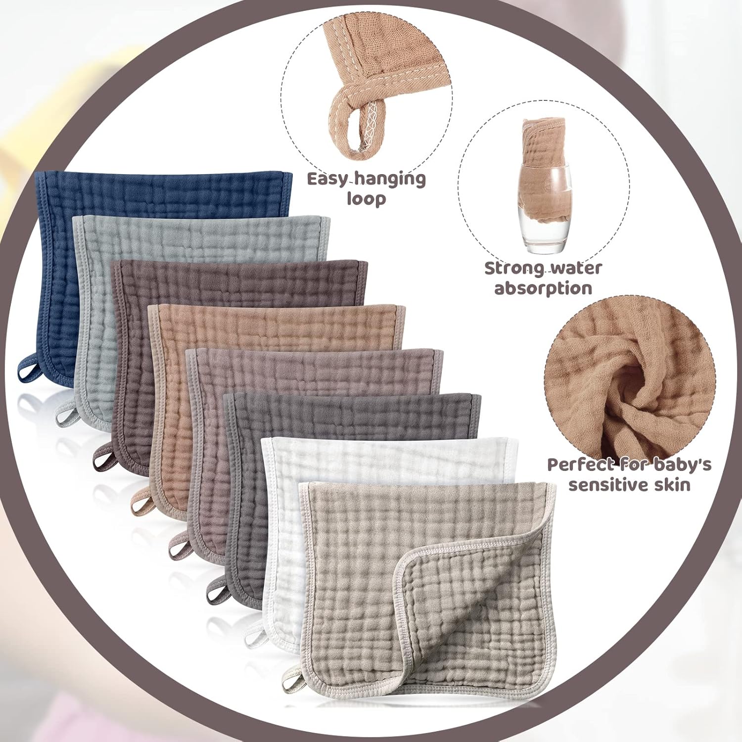 - Babies Accessories: the design of folds makes the large burp cloths softer, suitable for using as baby's washcloth, diaper, drool cloth, burp cloth, which can bring care to baby's skin