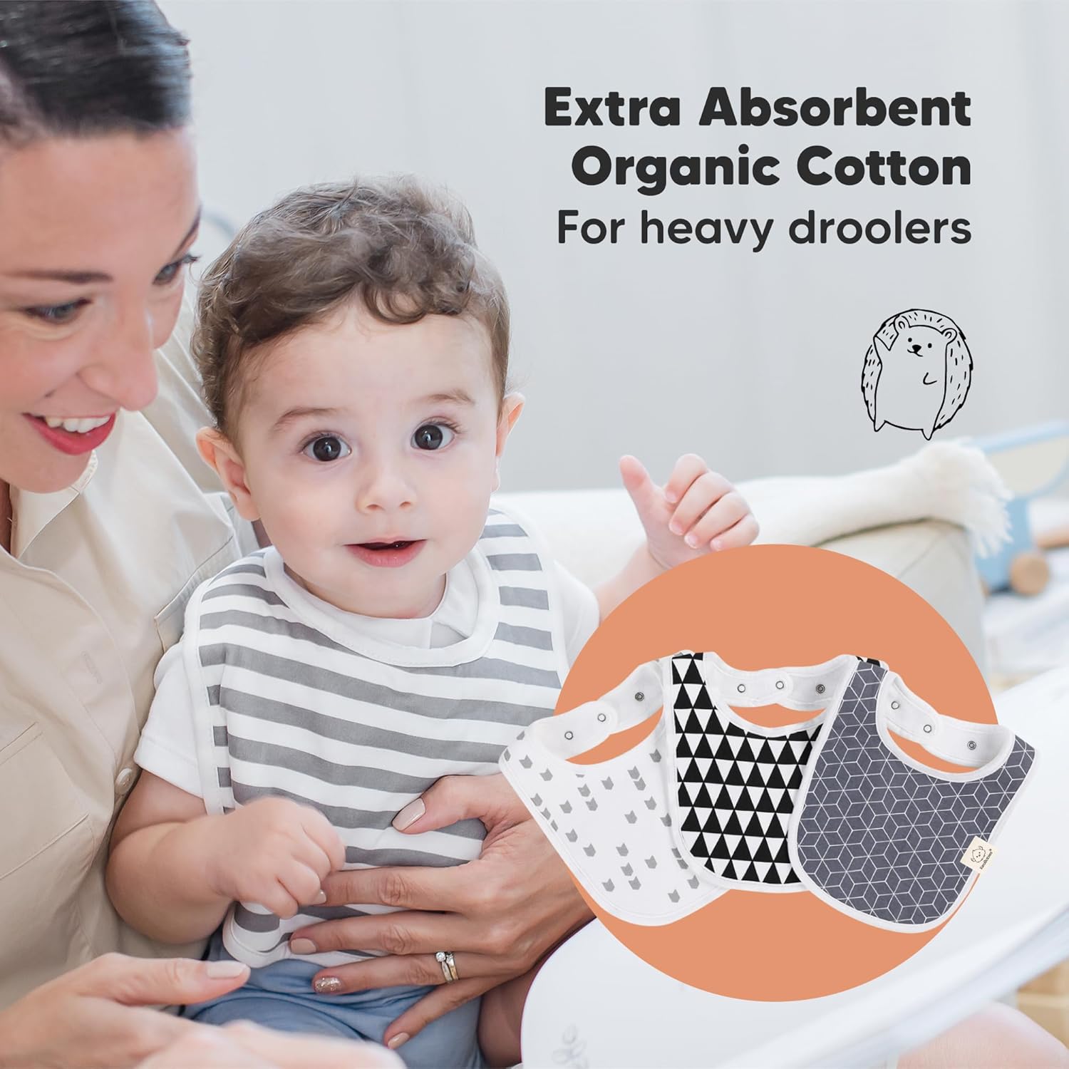 - Super Absorbent - Our organic baby boy and girl bibs are made with 100% organic cotton (GOTS-certified) and backed with water resistant fleece for added absorption. This dual layer design helps to keep your baby clean and fresh all day long. Suitable for newborns, infants, toddlers, heavy droolers and teething babies.
