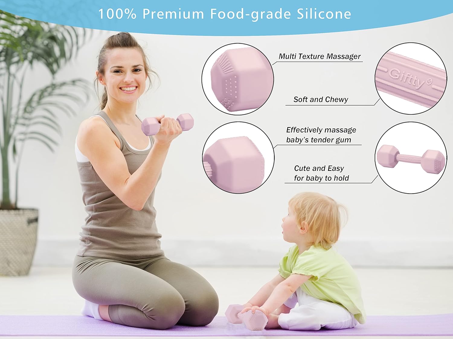 - PERFECT BABY GIFT: Practical and colorful, this baby weight teether toy will make a perfect Gift to fitness-inclined new parents and a great baby shower gift for every baby!