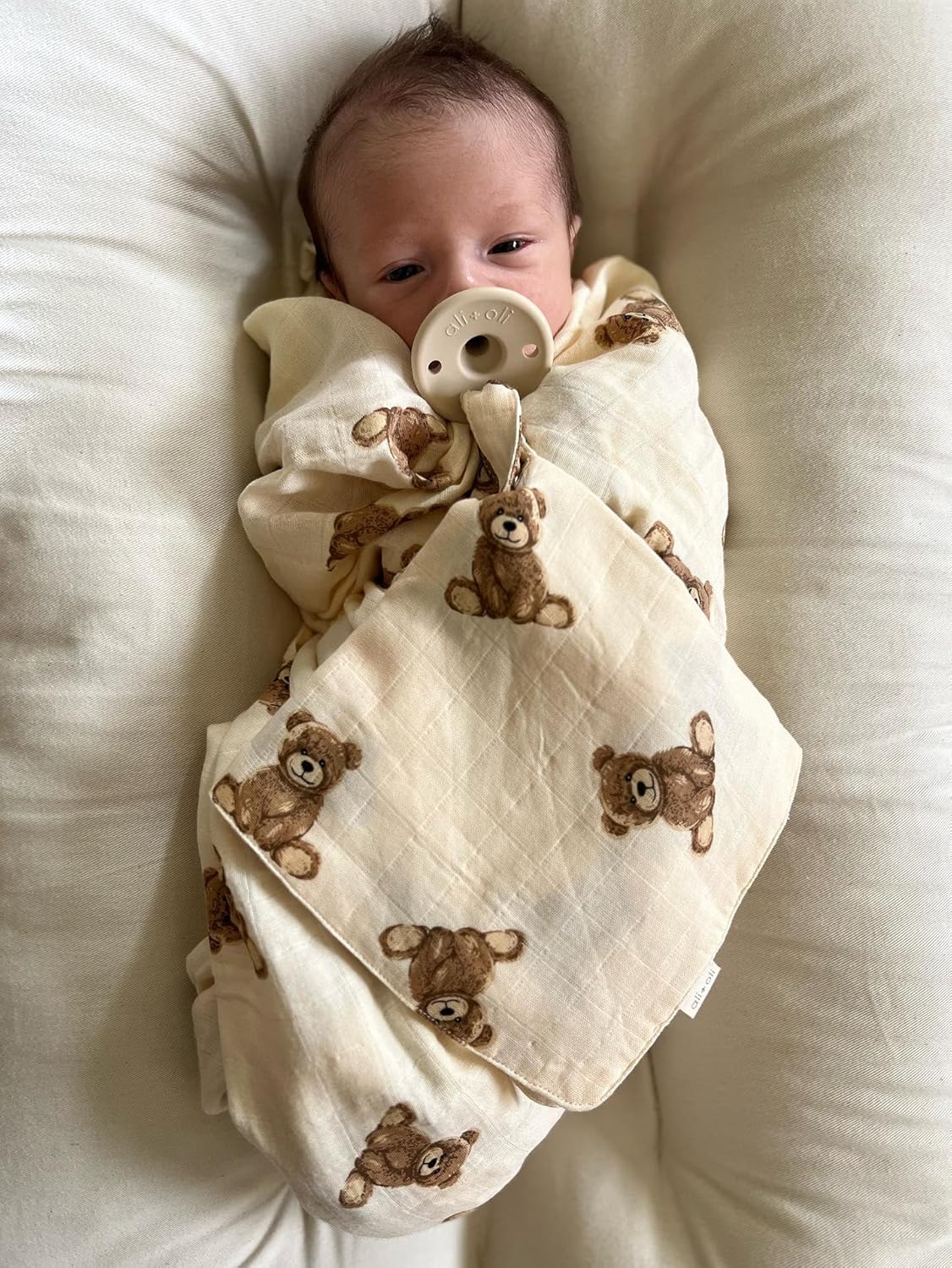 Ali+Oli Pacifier for Baby (2-pk) Set Original Round (Oat-Coco) Concaved Shield Newborn Pacifiers, BPA-Free Silicone Baby Pacifier Set, Baby Binkies, Chupones para Bebes