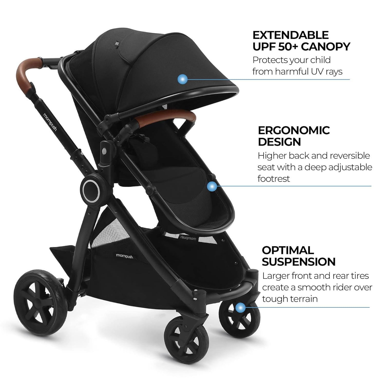 Mompush Ultimate2 Baby Stroller, Premium Convertible Full-Size Stroller for Toddler, Reversible Seat with One Hand Recline Adjustment, Car Seat Adapter Included