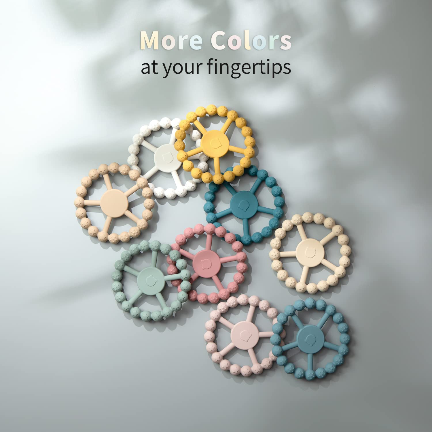 - Brighten Up Teething Time - Inspired by Ferris Wheels, this teething ring will come as a hit to your baby's world and add a lot more fun to his or her chewing exploration. It fits chubby little hands just right, and it's chic and cute without being garishly bright.
