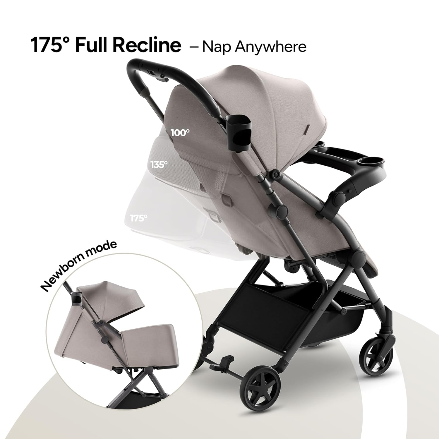 - Multi-Position Recline: Features a mechanical recline system with 3 adjustable positions that can be precisely controlled with one hand, providing a near-flat 175° recline perfect for newborns and toddlers. Paired with an adjustable footrest, it ensures maximum comfort for both travel and everyday use.