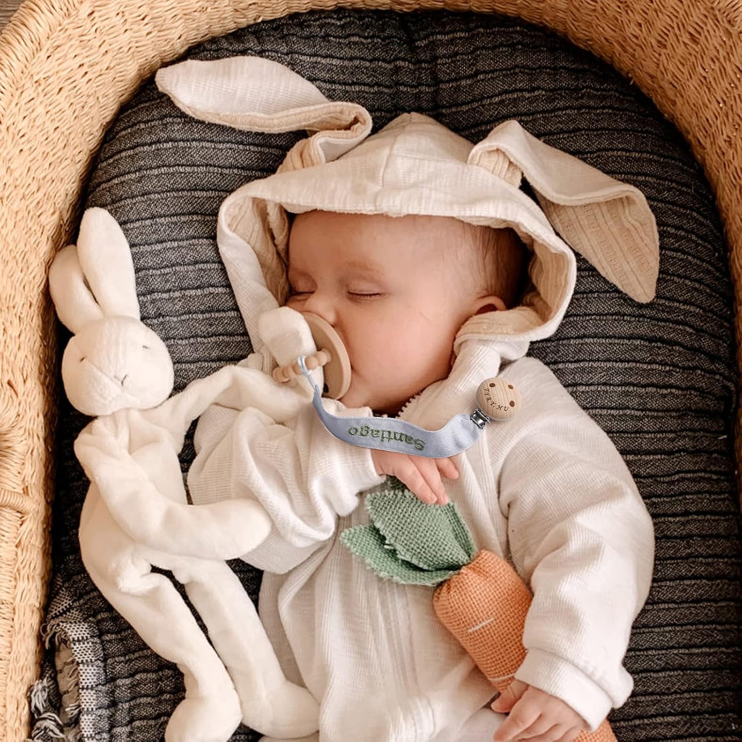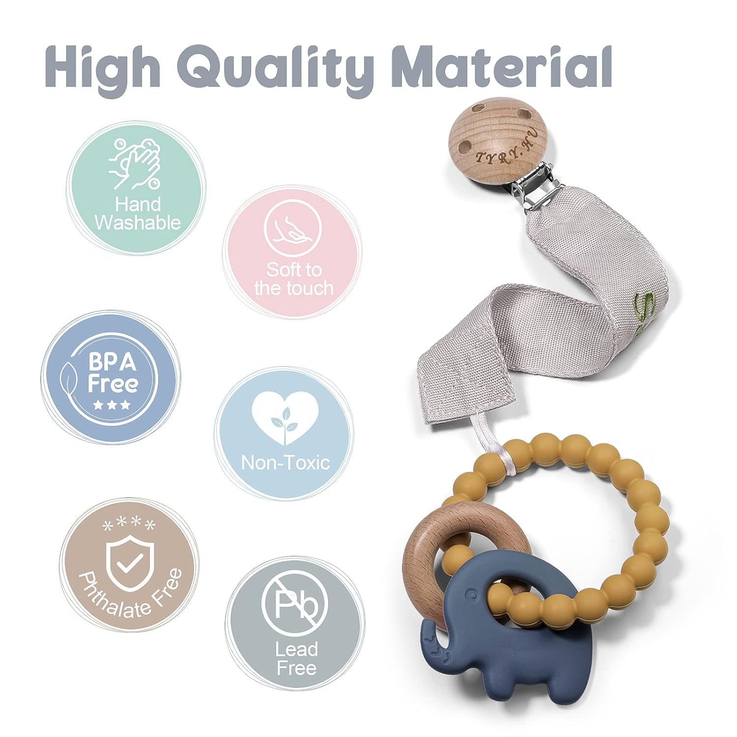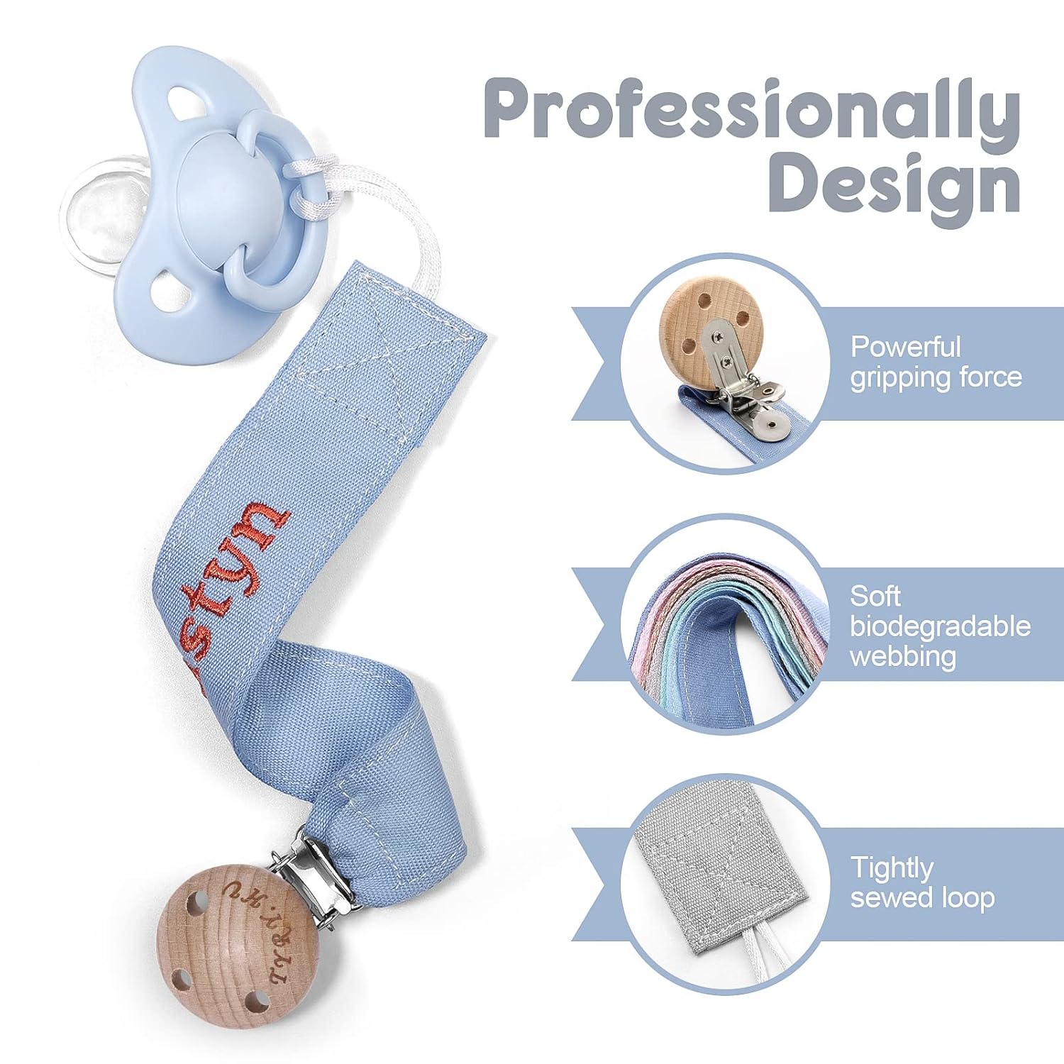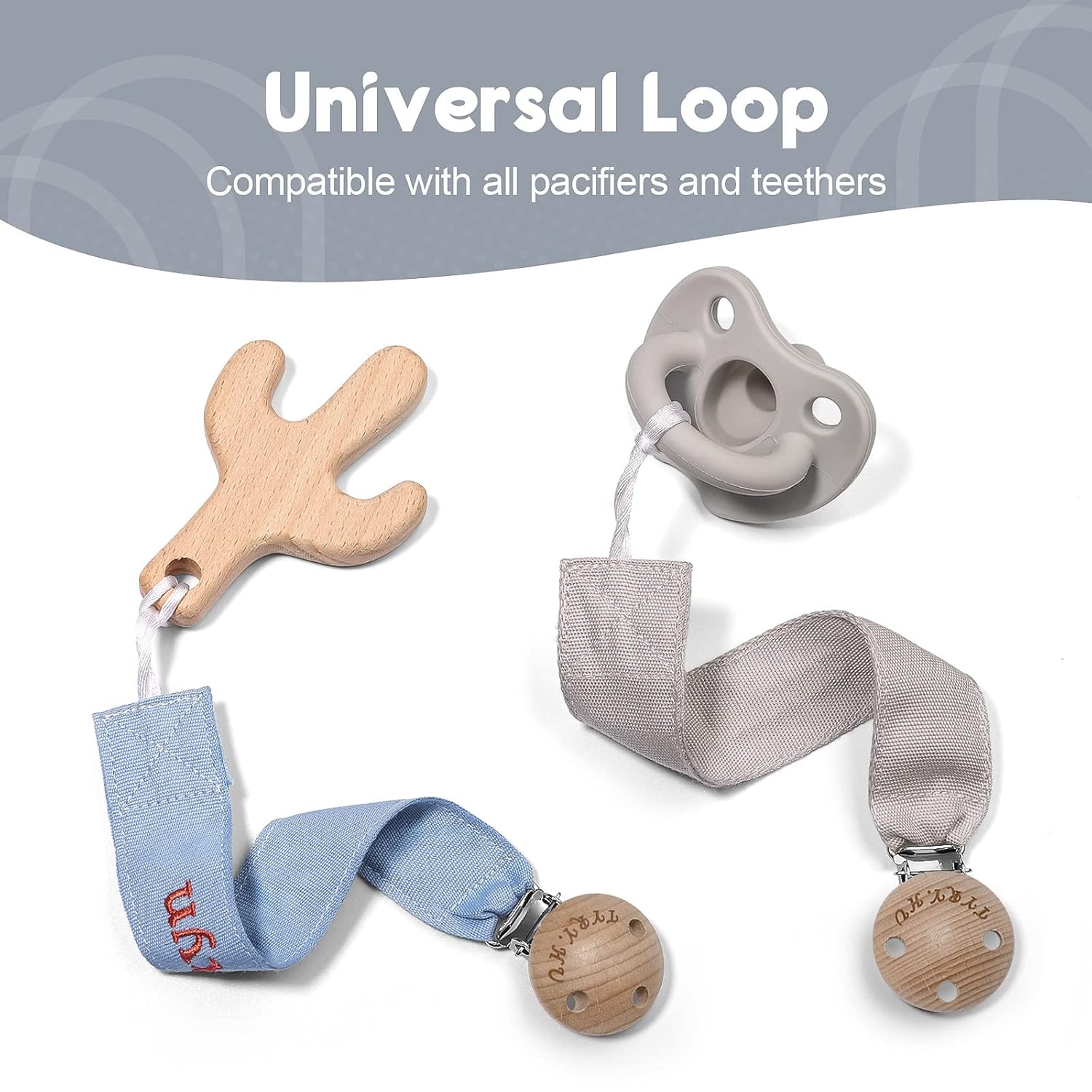 - Soft and Safety: The soother ribbon pacifier leash are made of soft webbing and the high quality material is washable; The clip head has three holes to avoid choking, making it safer for babies; Wooden stainless steel clip is lighter than silicone